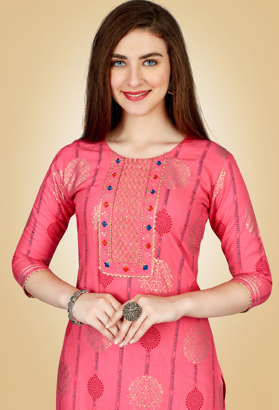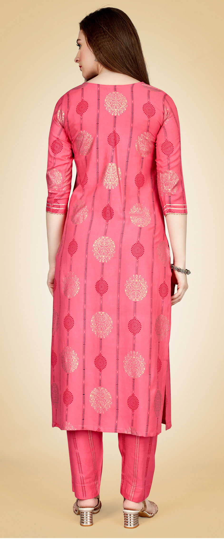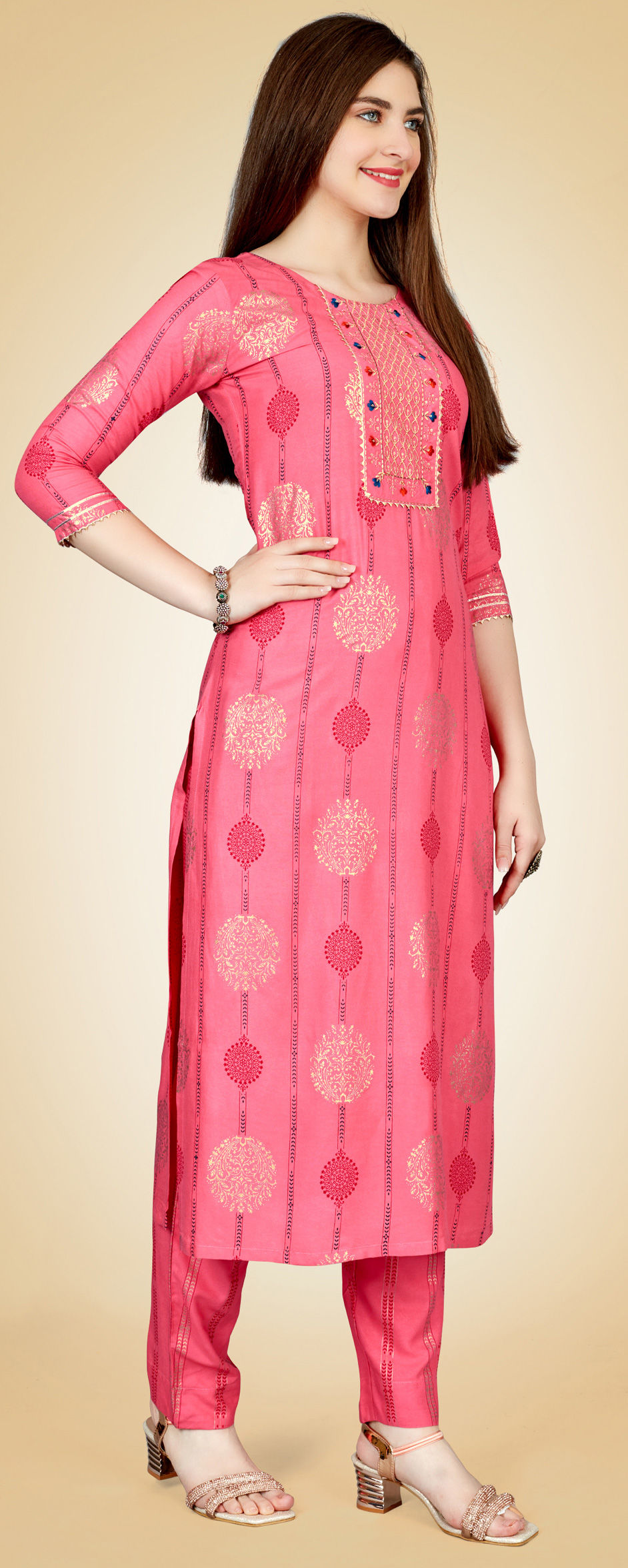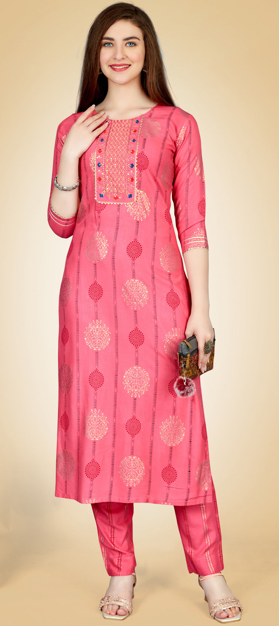 Pink and Majenta color Salwar Kameez in Rayon fabric with Embroidered, Resham, Sequence, Zari work