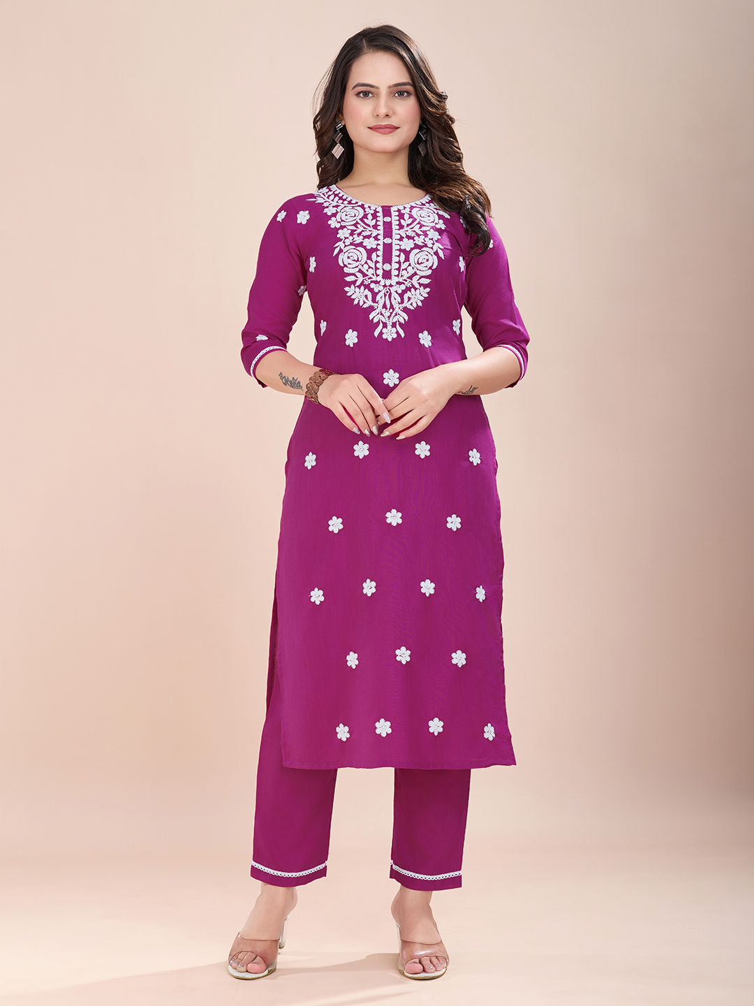 Purple and Violet color Salwar Kameez in Rayon fabric with Embroidered, Thread work