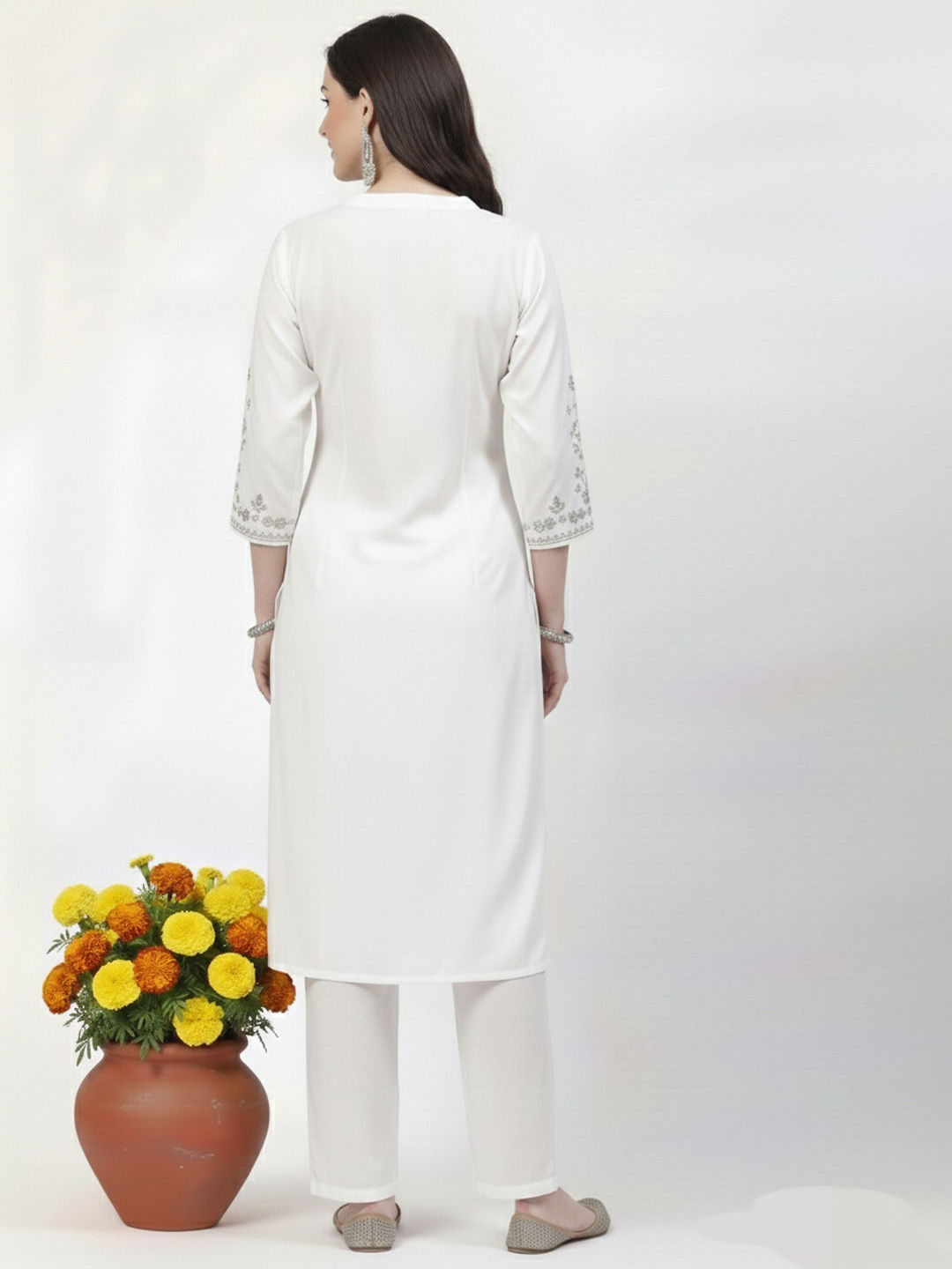 in White and Off White with Embroidered work