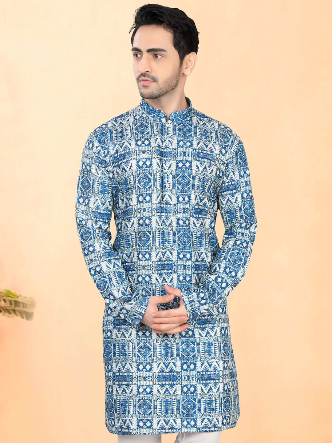 Blue color Kurta in Cotton, Rayon fabric with Sequence, Thread work