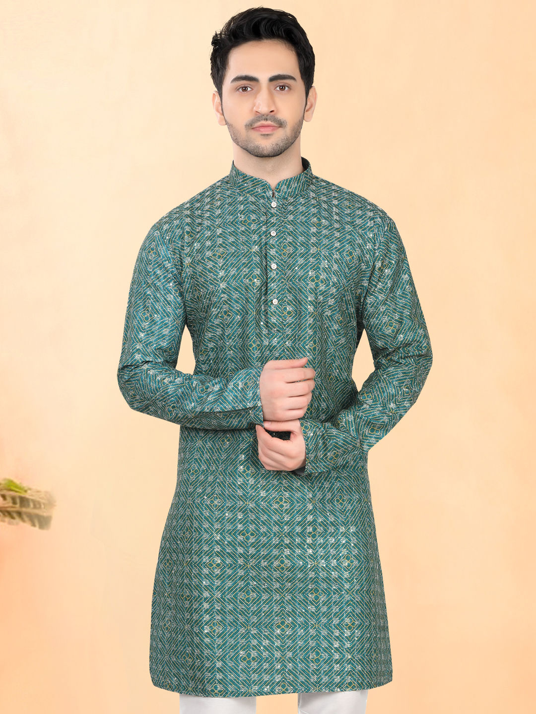 Green color Kurta in Cotton, Rayon fabric with Sequence, Thread work