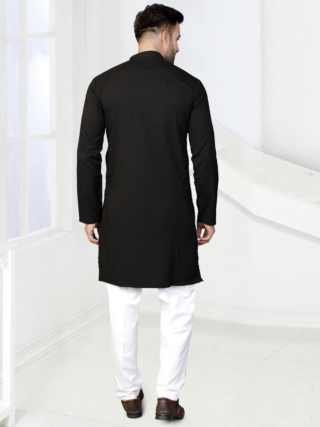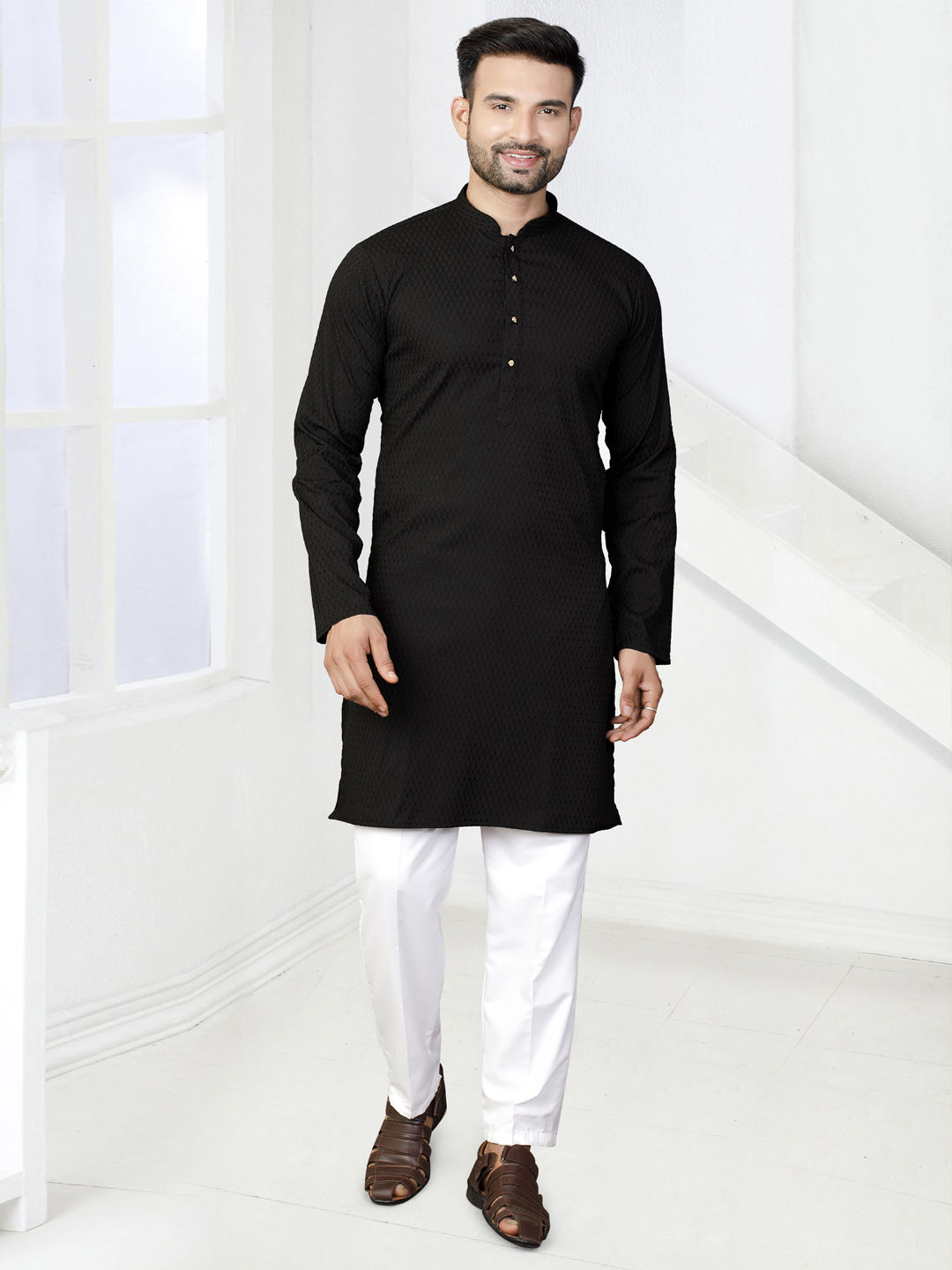 Jacquard Traditional Kurta Pyjamas in Black and Grey with Weaving work
