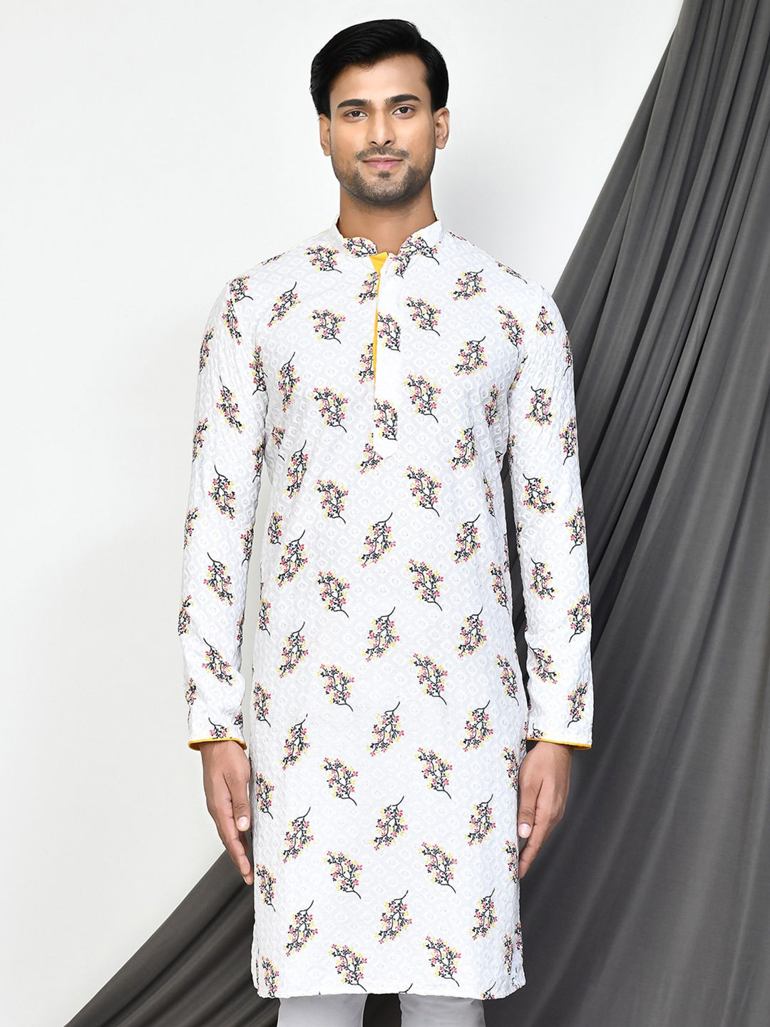 in White and Off White with Printed work