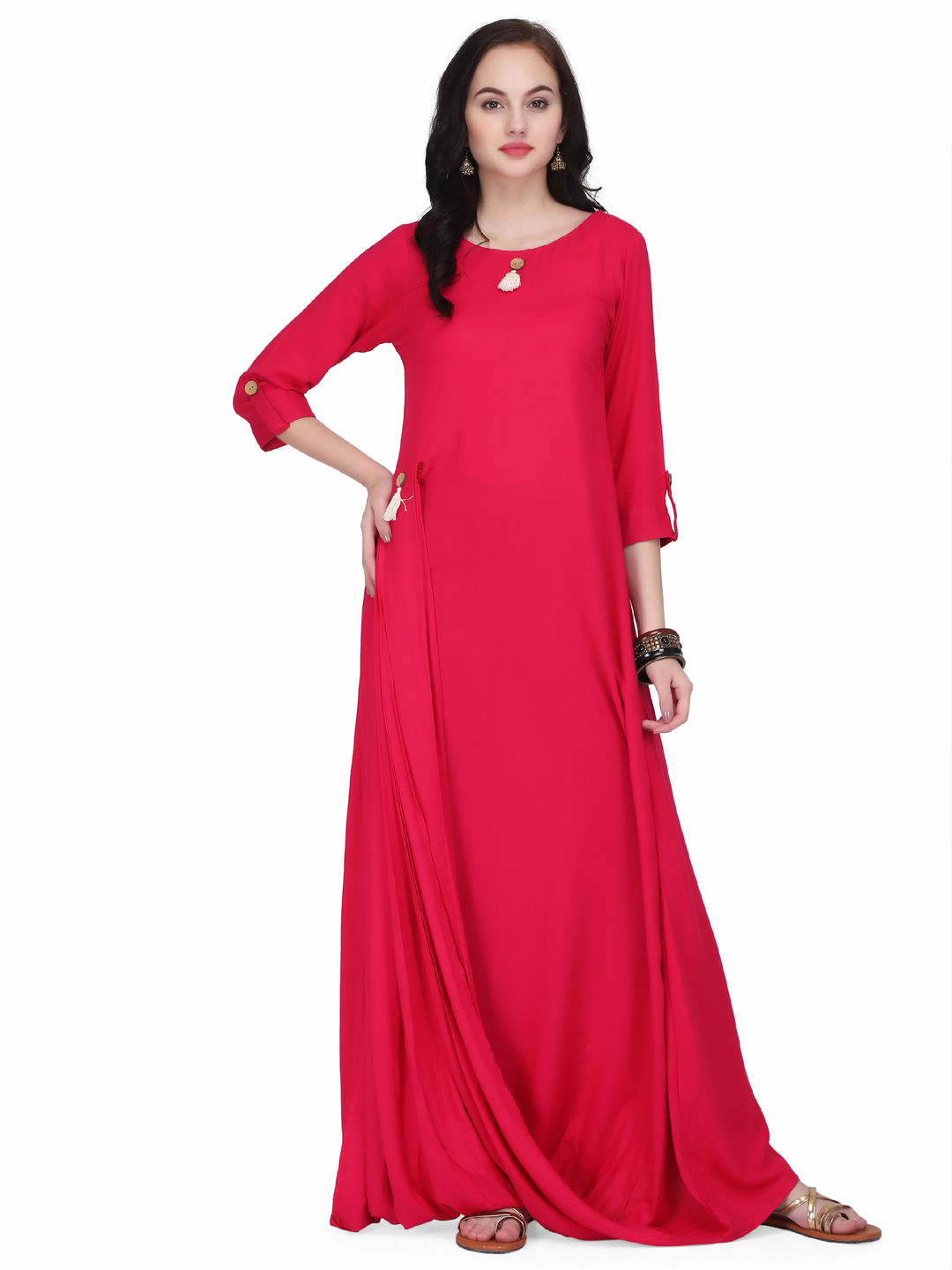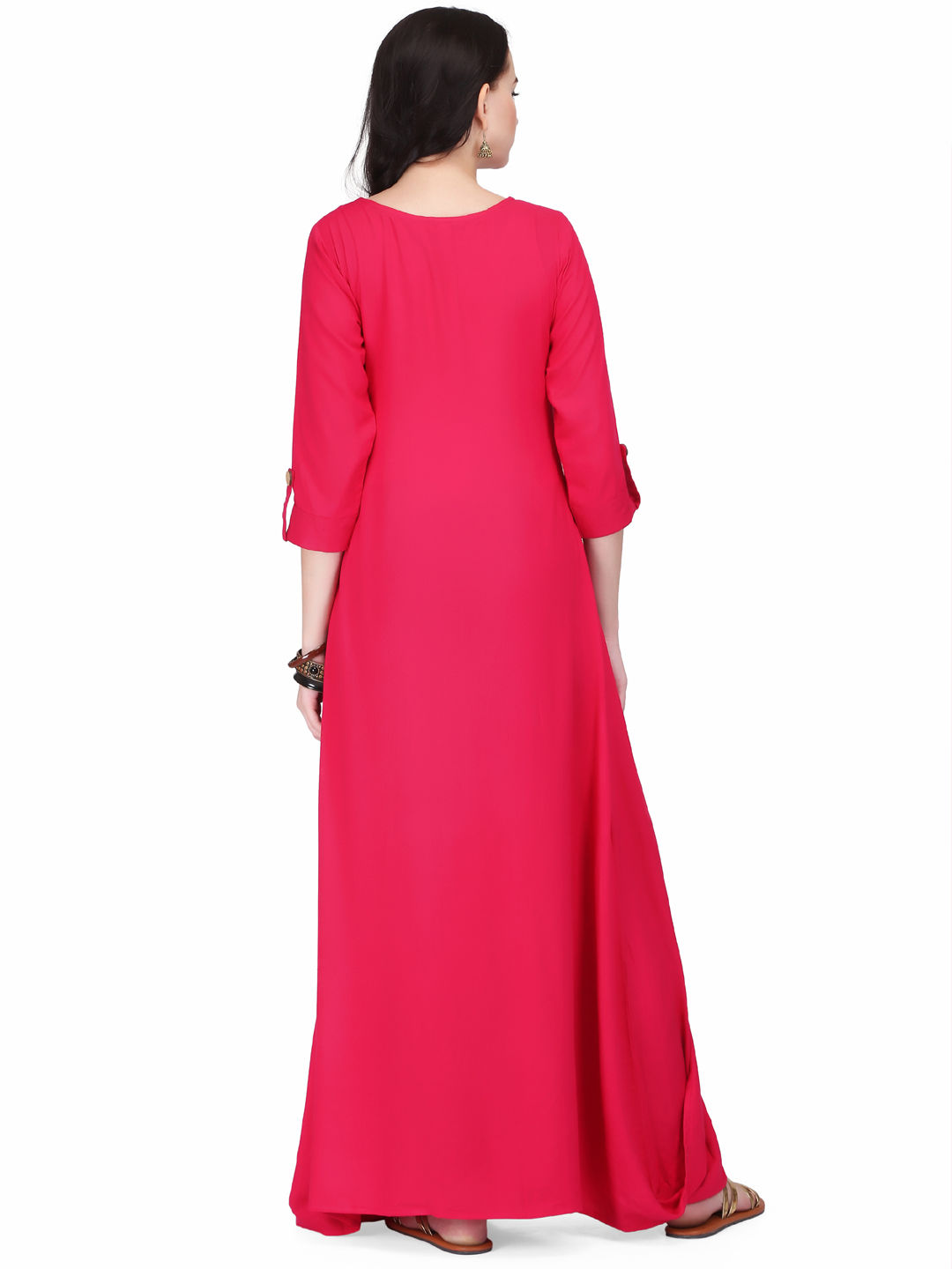 Pink and Majenta color Kurti in Rayon fabric with Moti work