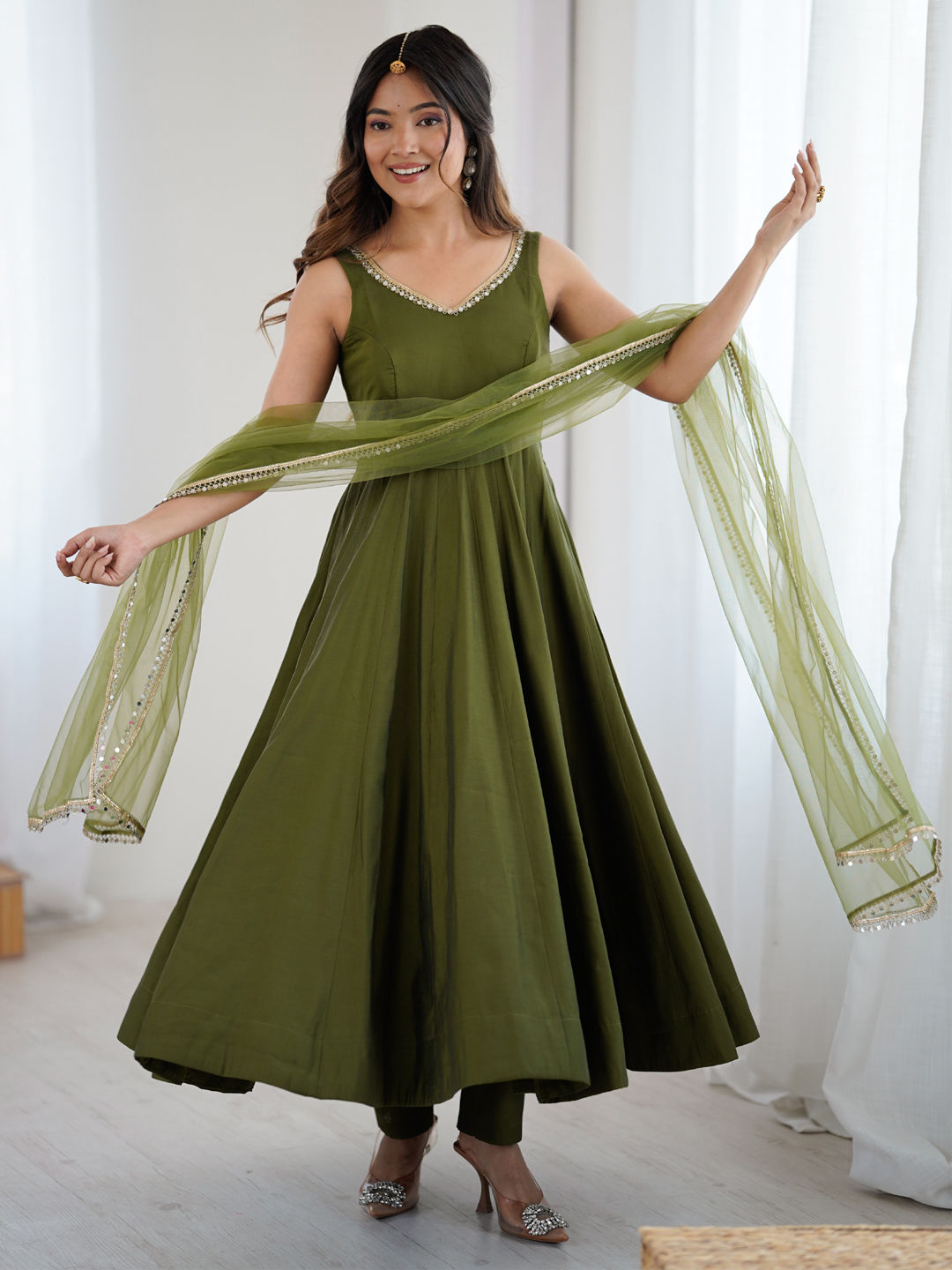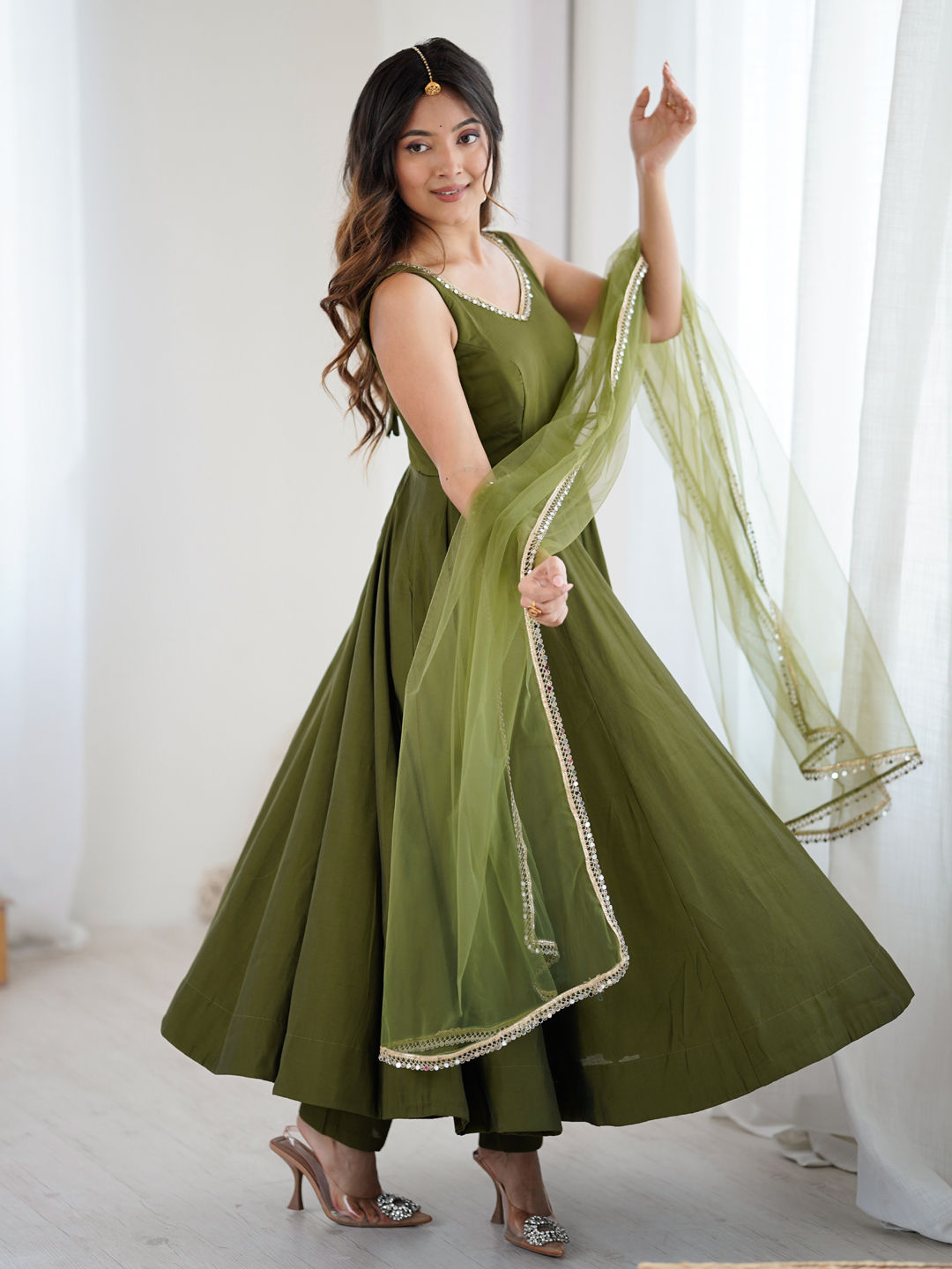 Green color Salwar Kameez in Roman Silk fabric with Lace work