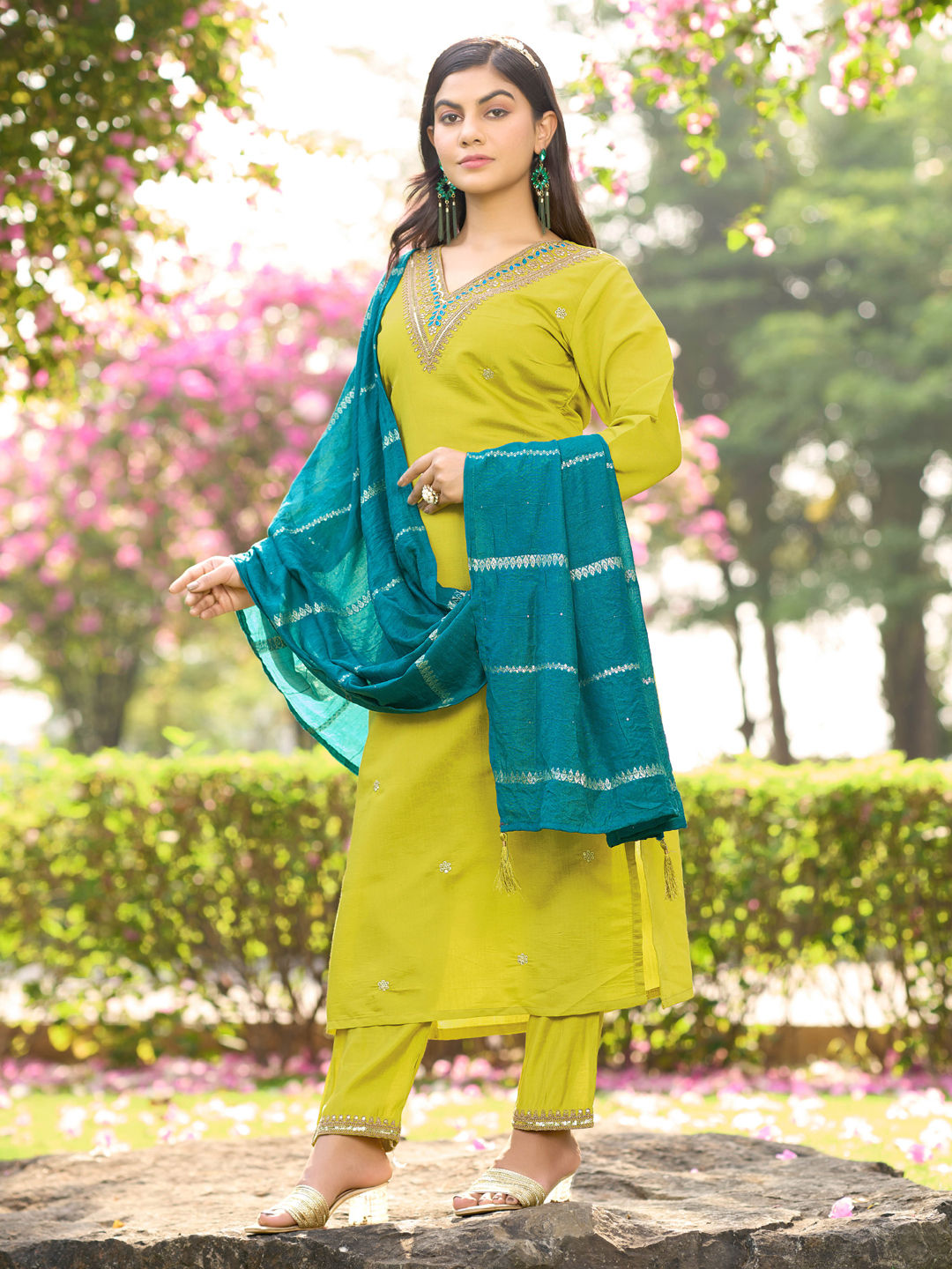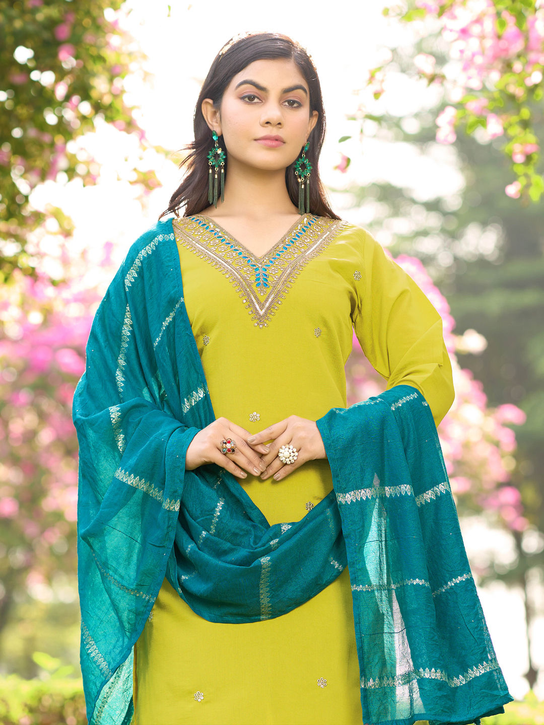 Roman Silk Party Wear Salwar Kameez in Green with Embroidered work