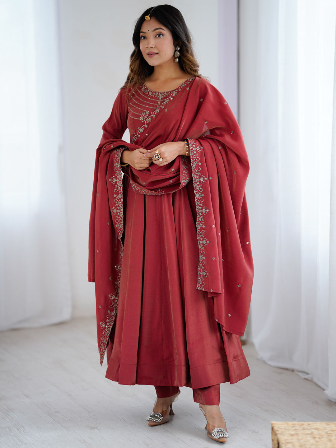 in Red and Maroon with Zari work
