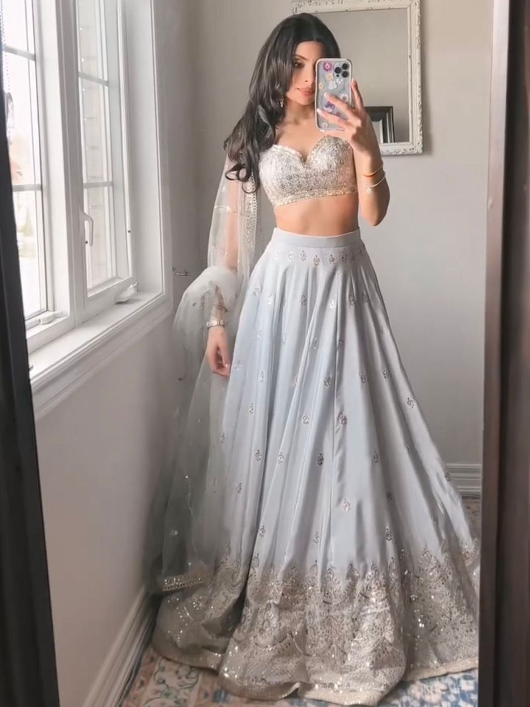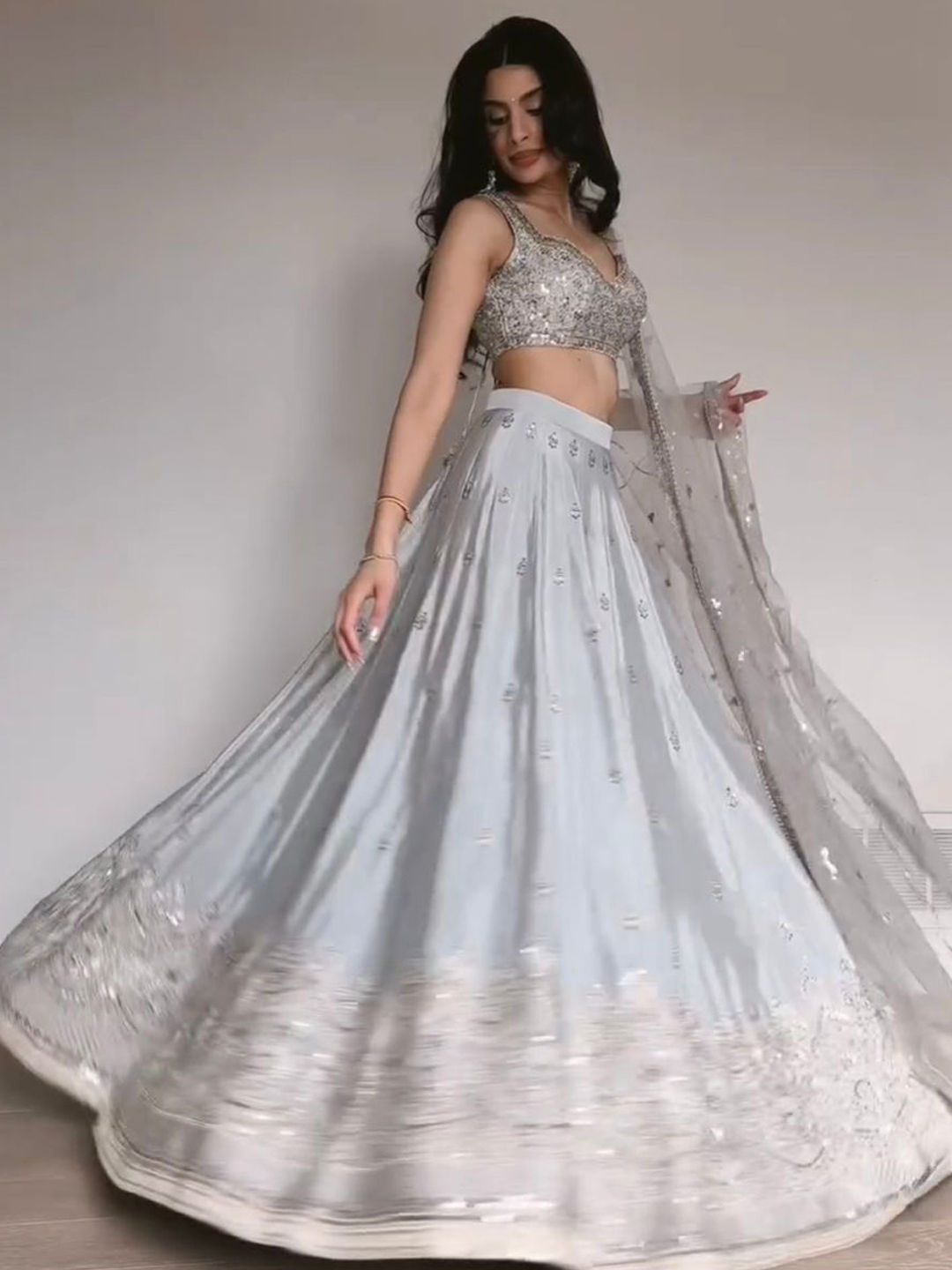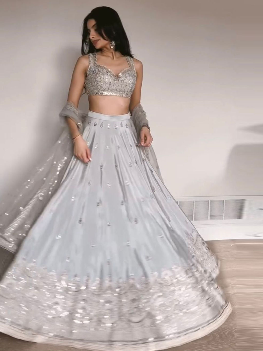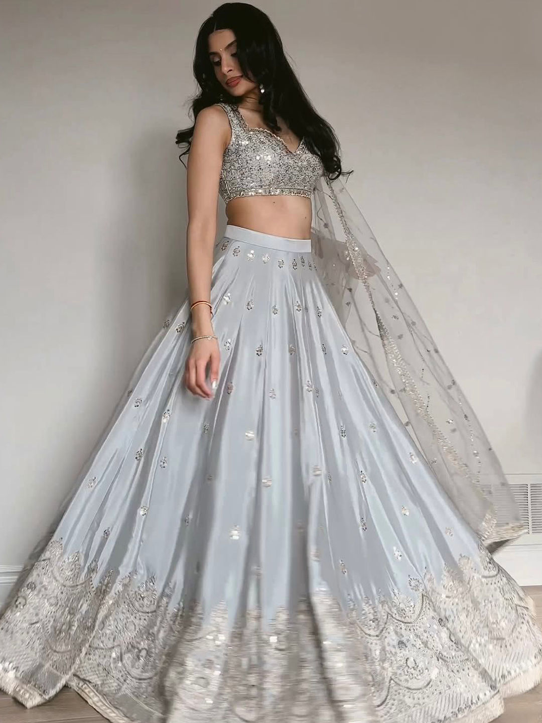 Silver color Lehenga in Satin fabric with Embroidered, Sequence work