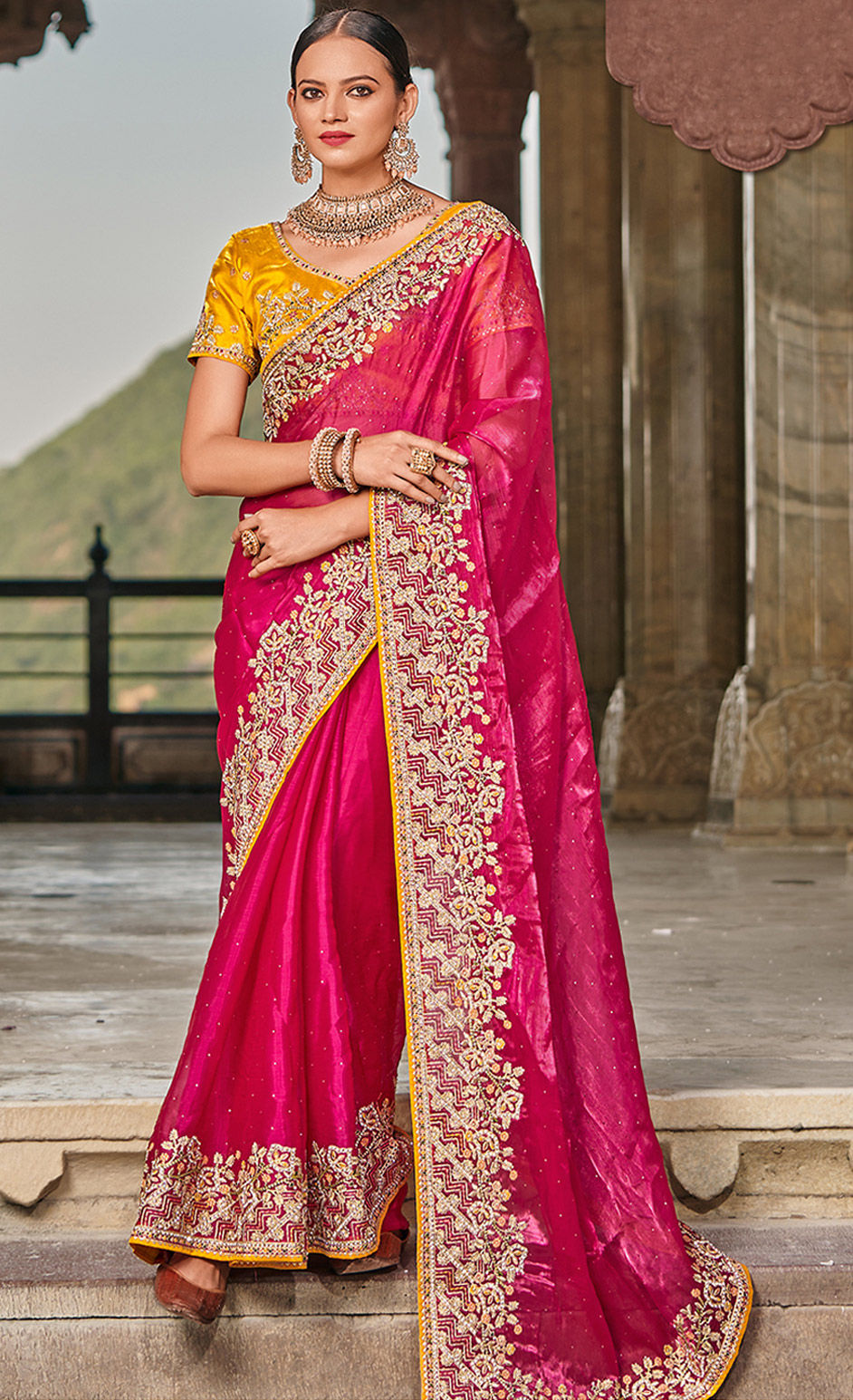 in Pink and Majenta with Embroidered work