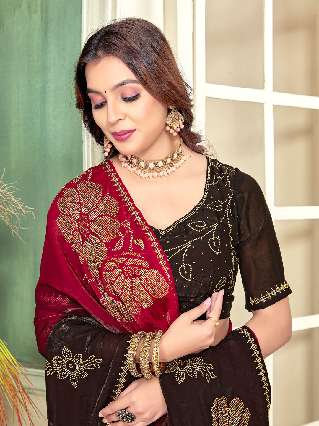 in Red and Maroon with Thread work