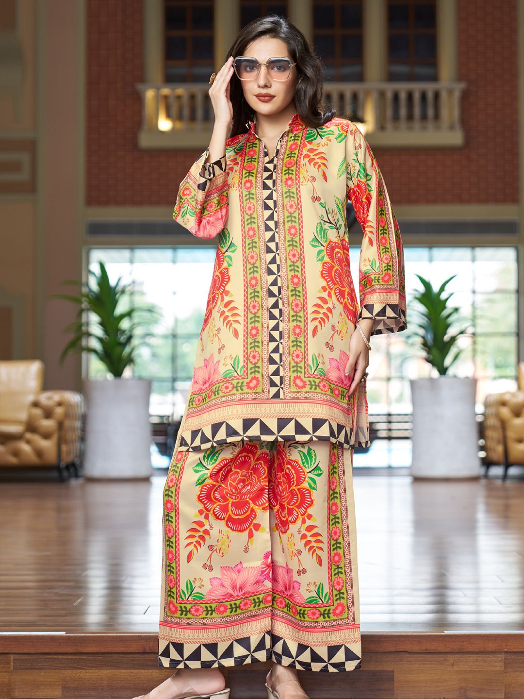 in Beige and Brown with Floral work
