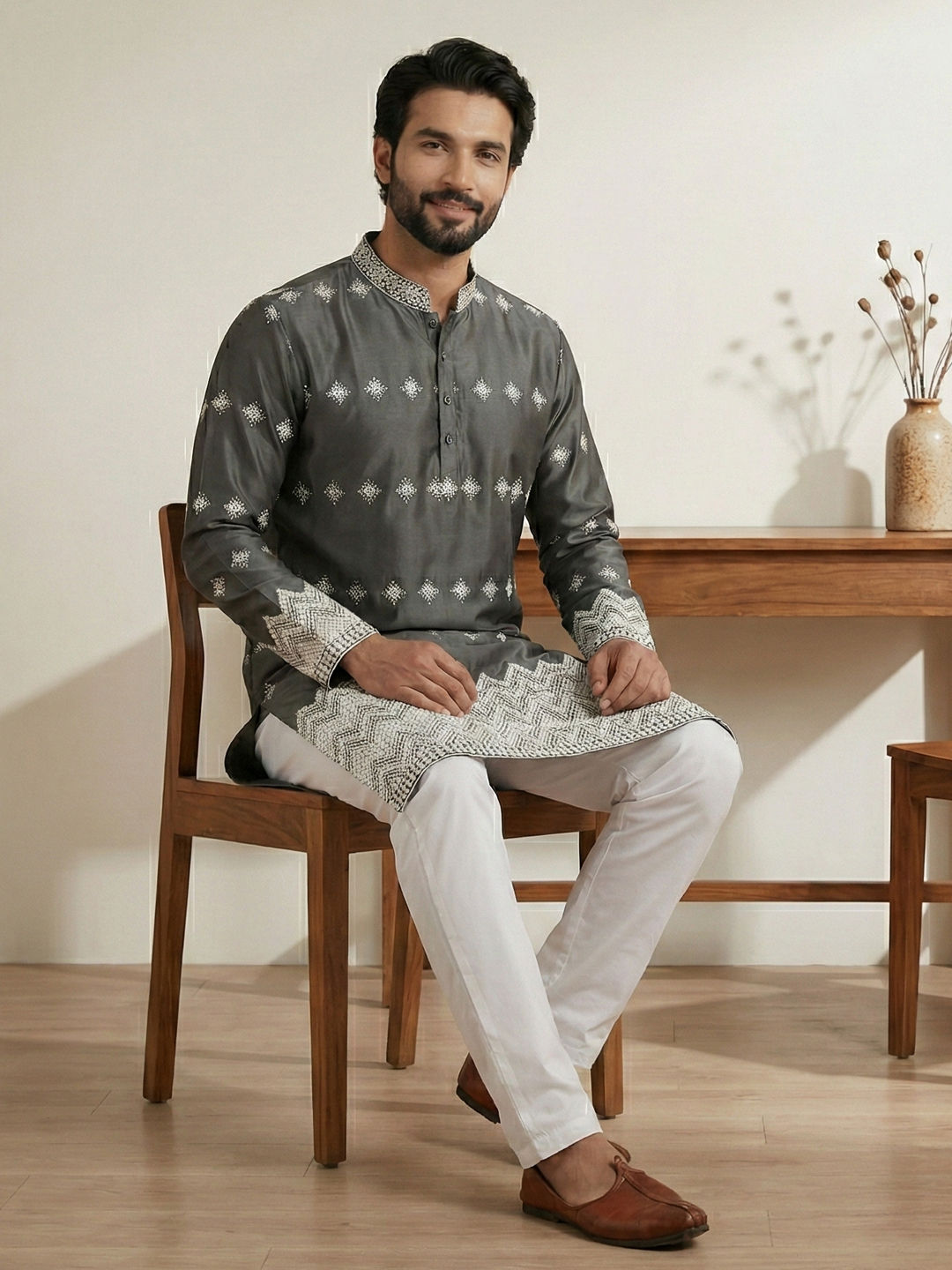 in Black and Grey with Embroidered work