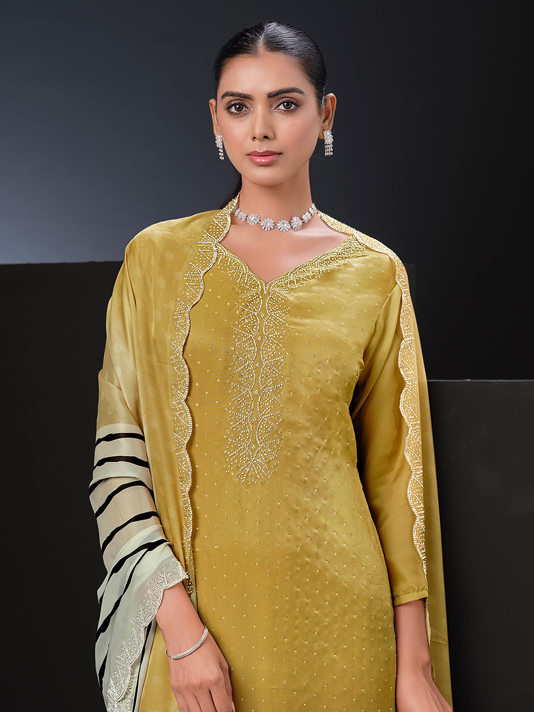 Yellow color Salwar Kameez in Satin Silk fabric with Stone, Swarovski work