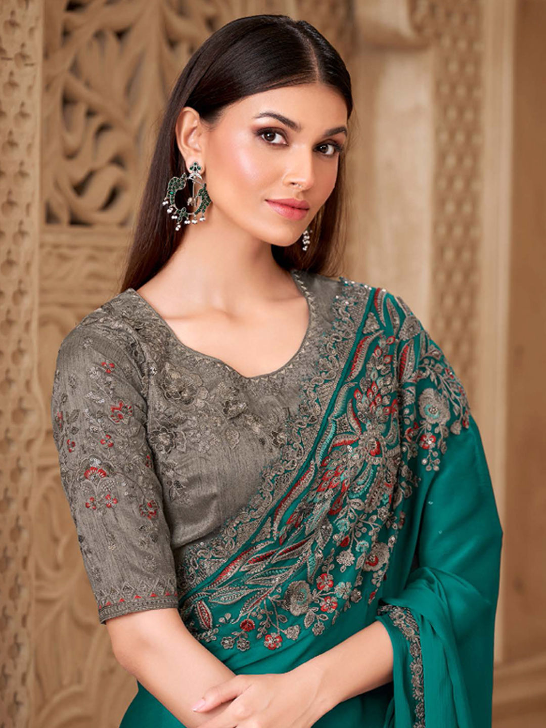 Georgette Festive Saree in Black and Grey with Embroidered work
