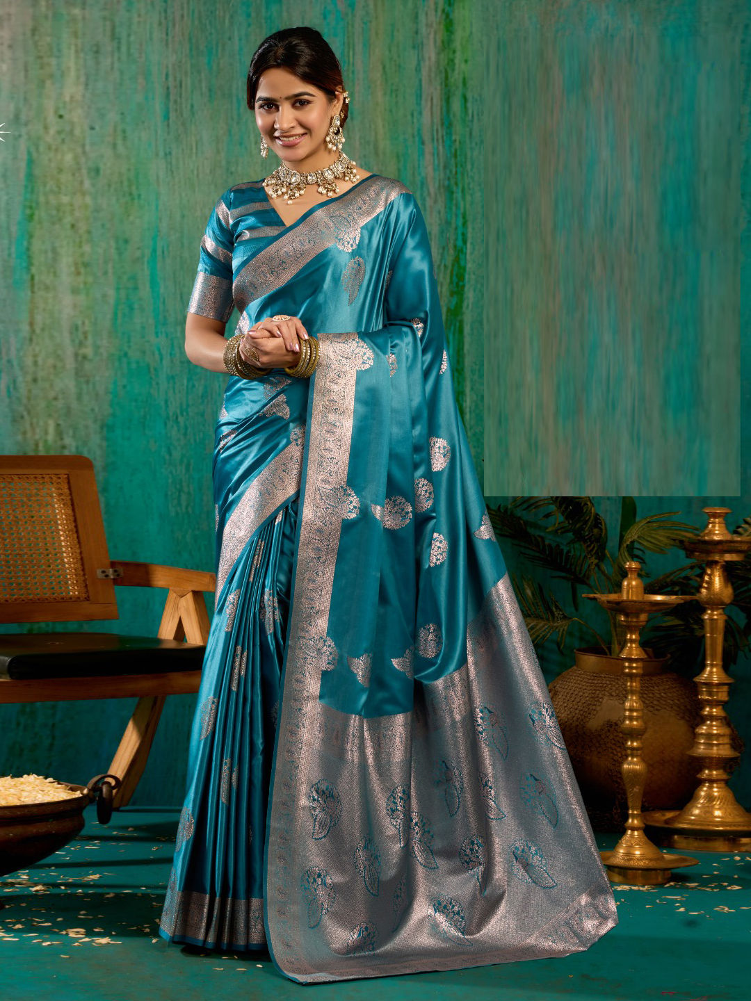 Satin Silk Festive Saree in Purple and Violet with Weaving work