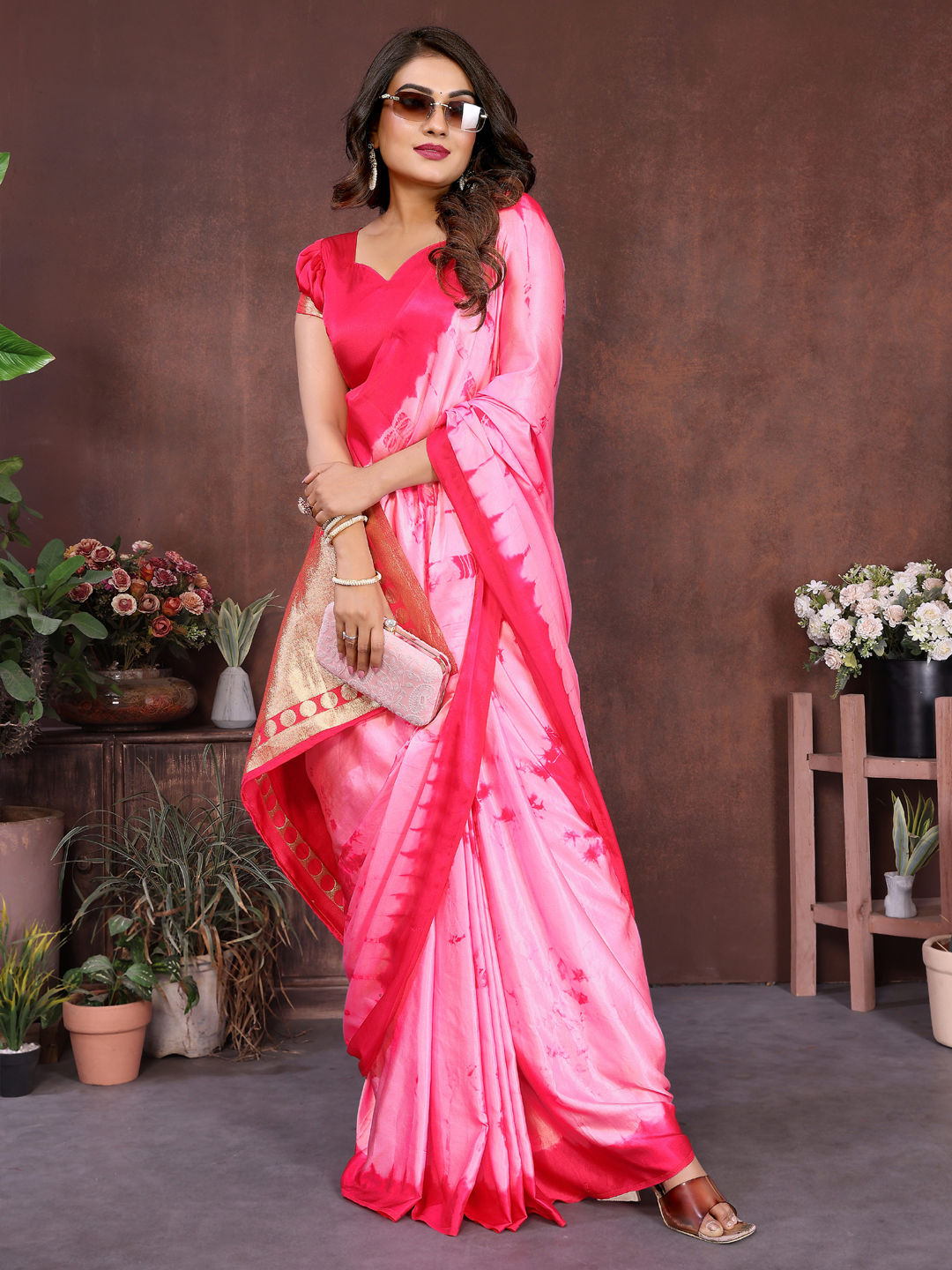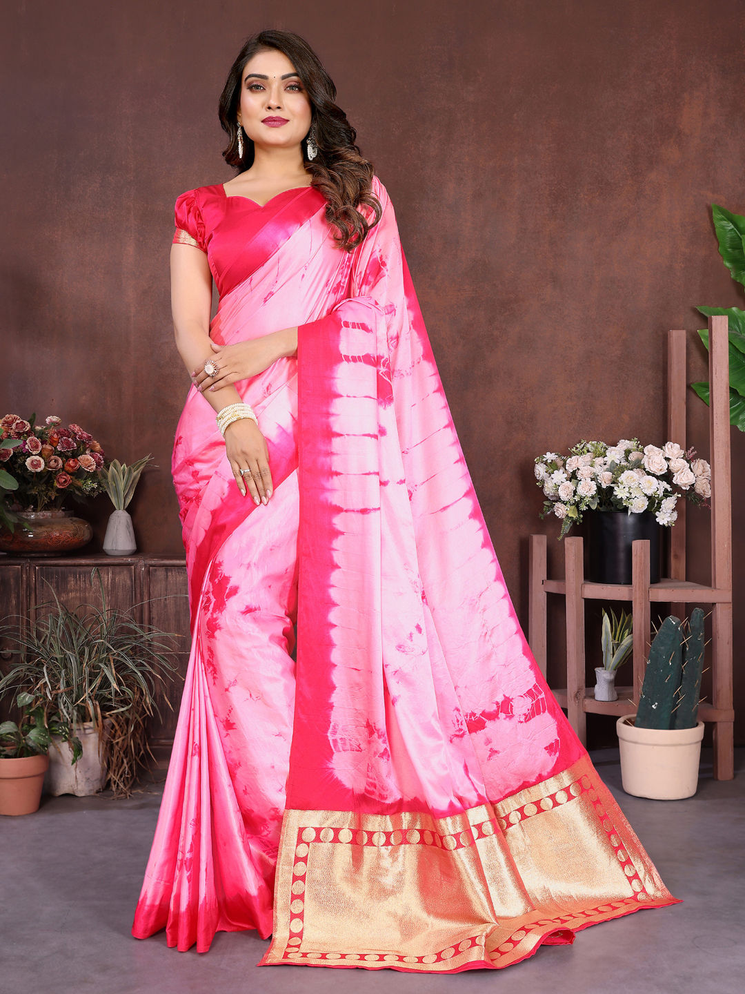 Satin Silk Reception Saree in Multicolor with Tye n Dye work