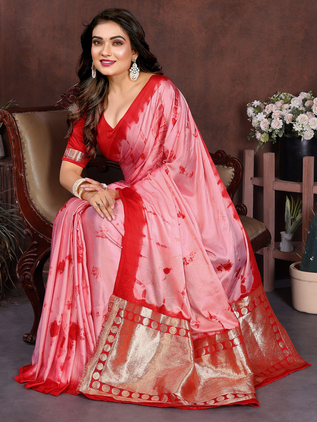 Satin Silk Reception Saree in Multicolor with Tye n Dye work
