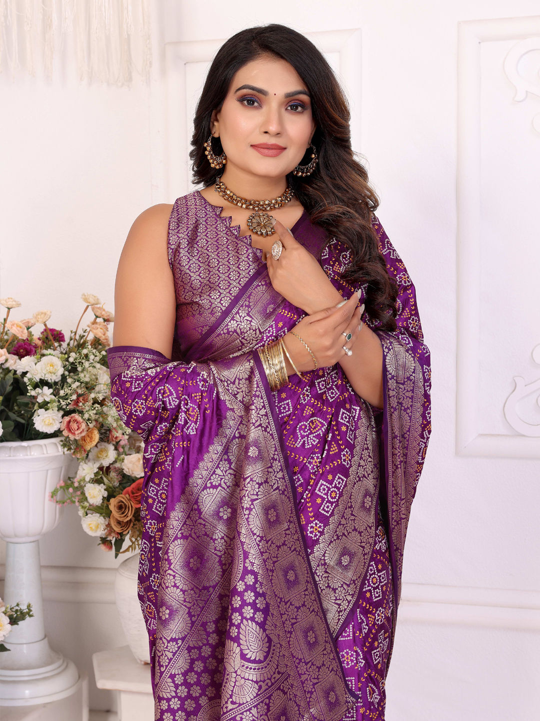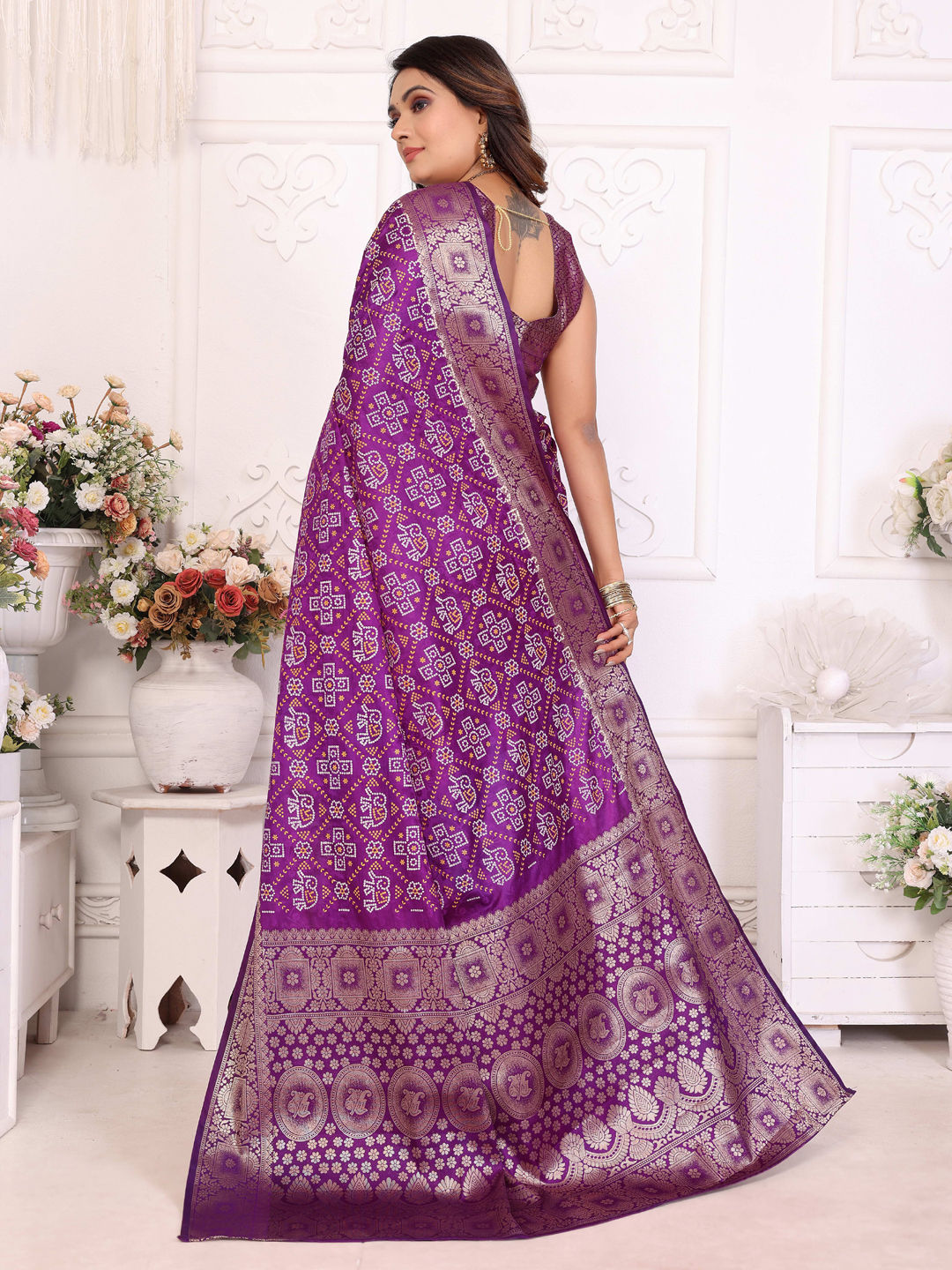 Purple and Violet color Saree in Satin Silk fabric with Bandhej work