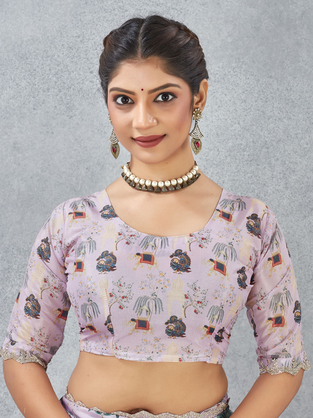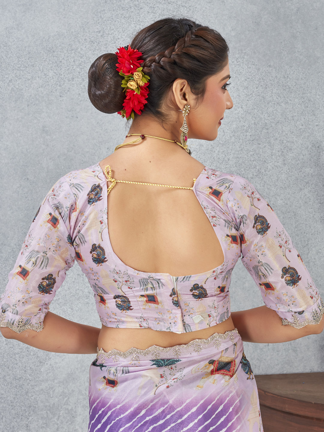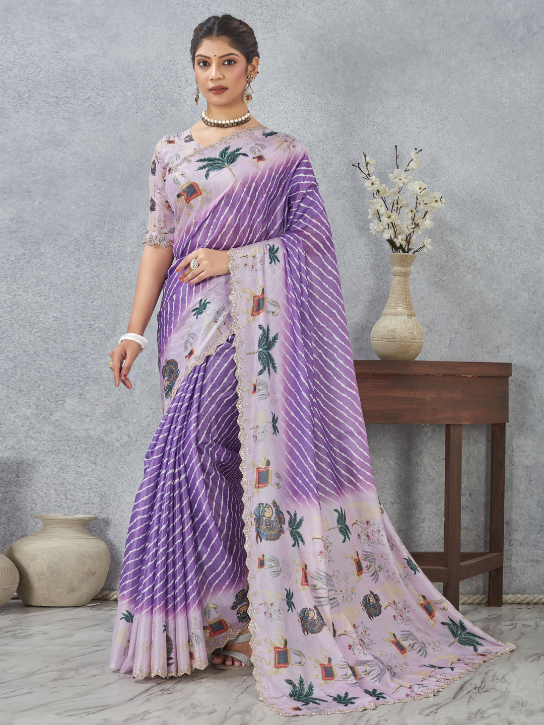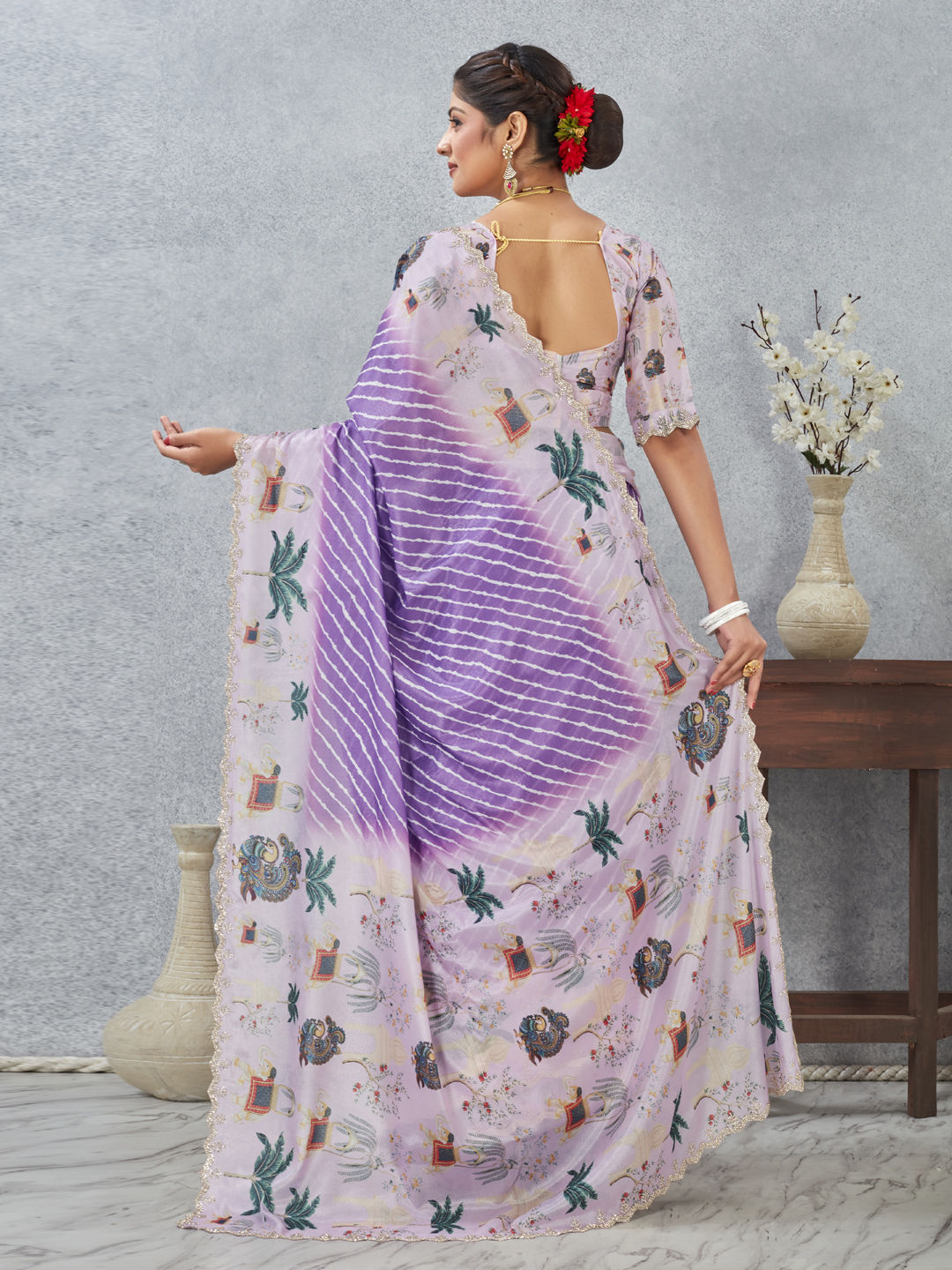 Purple and Violet color Saree in Satin Silk fabric with Digital Print, Zircon work