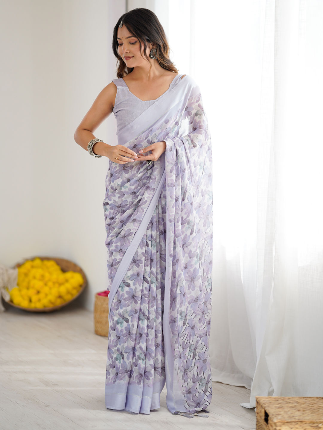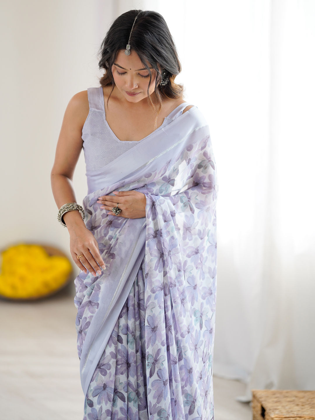 Purple and Violet color Saree in Satin Silk fabric with Floral, Printed work