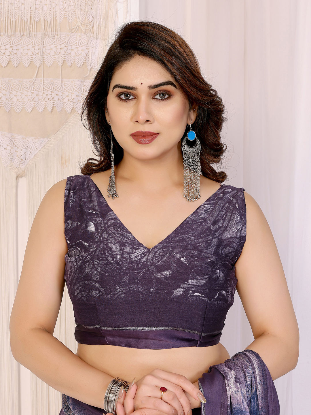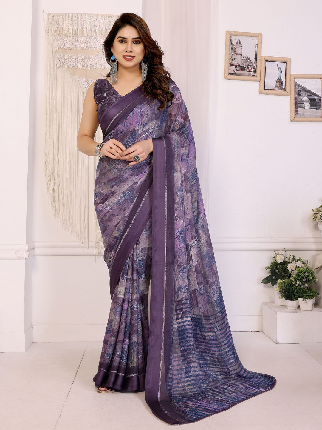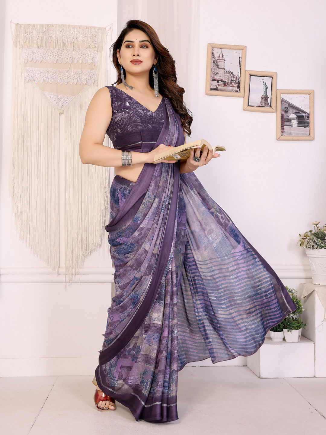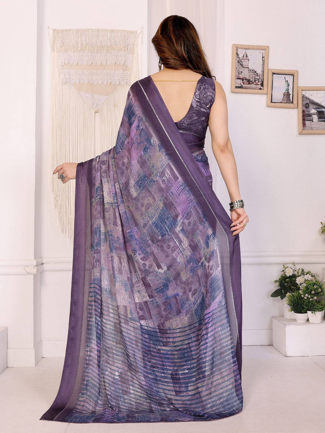 in Purple and Violet with Printed work