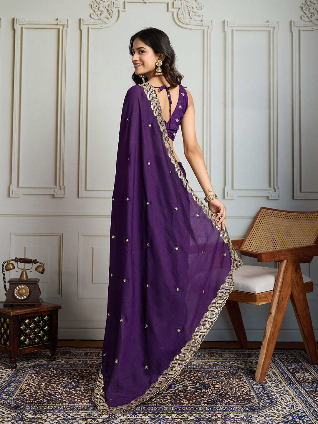 Satin Silk Traditional Saree in Purple and Violet with Cut Dana work