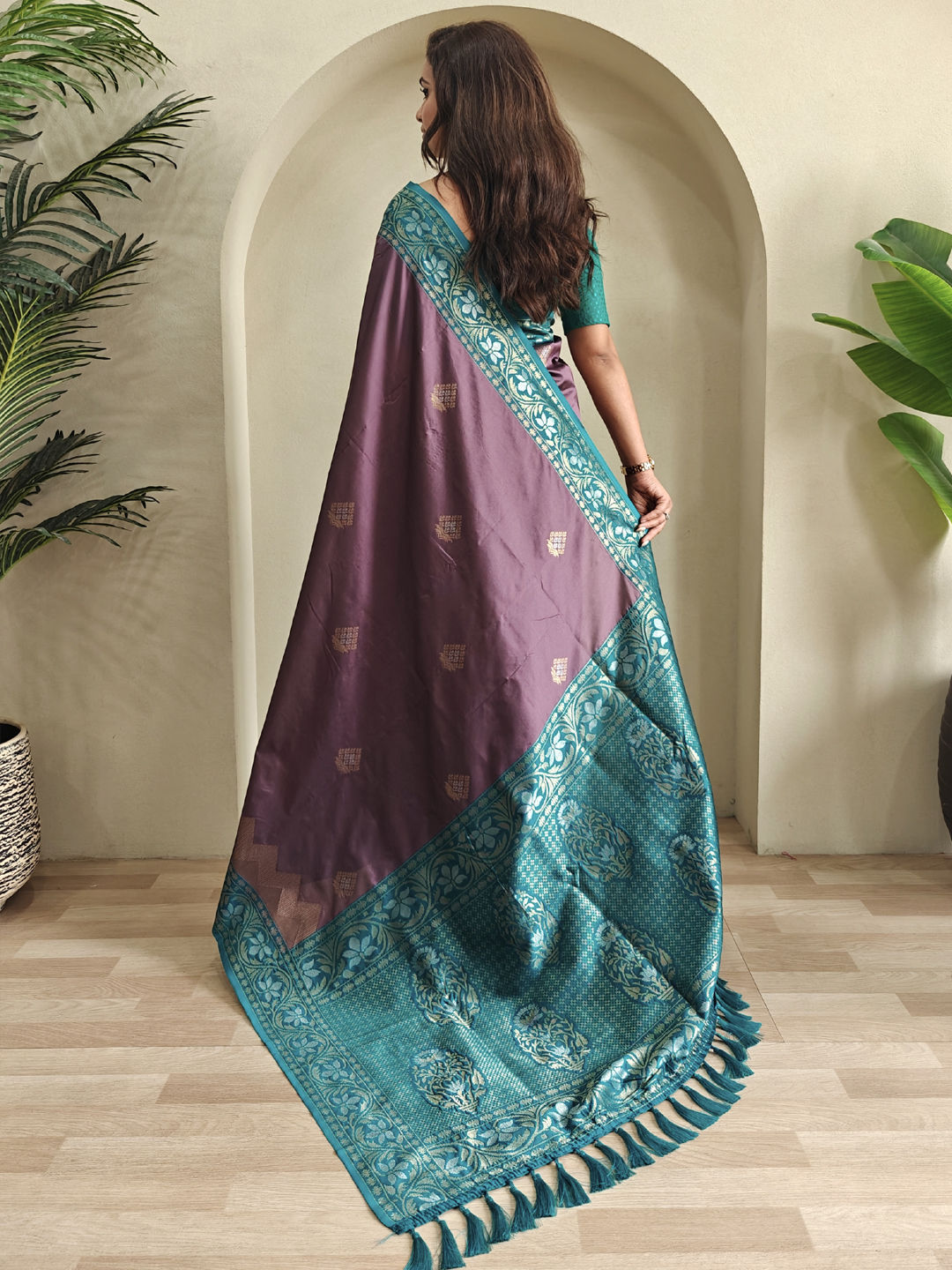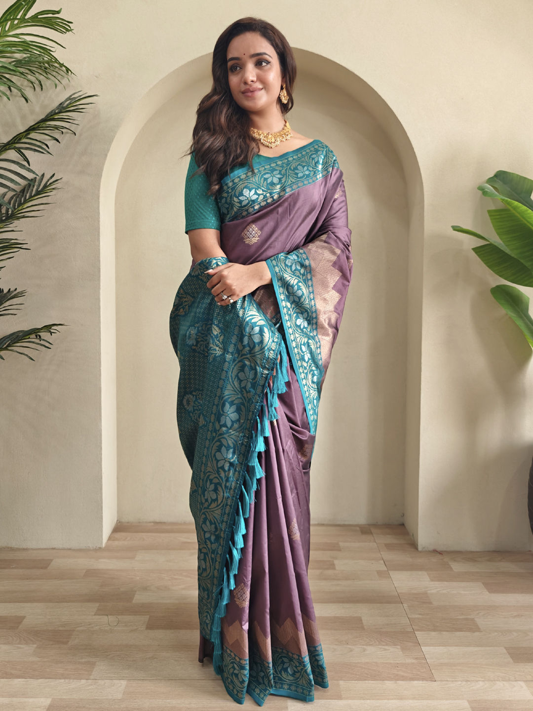 Purple and Violet color Saree in Satin Silk fabric with Weaving, Zari work