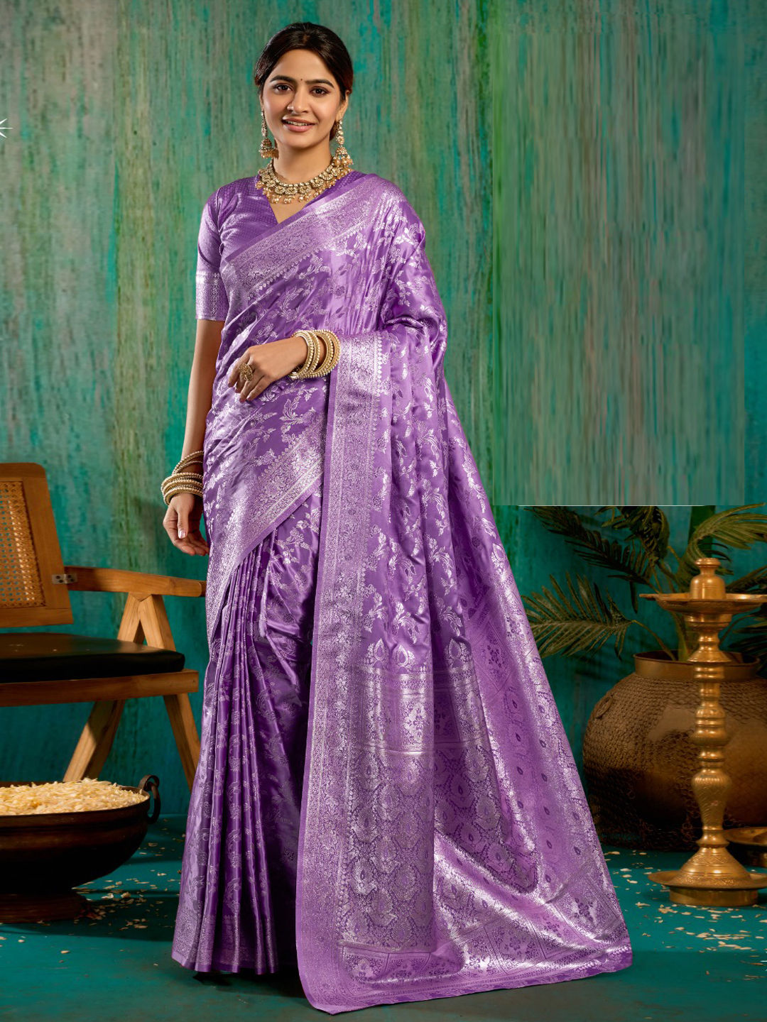Satin Silk Traditional Saree in Purple and Violet with Weaving work