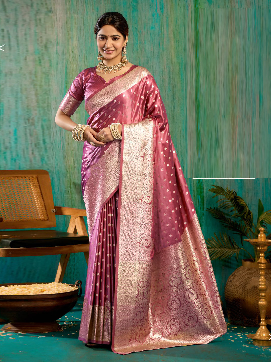 Satin Silk Party Wear Saree in Pink and Majenta with Weaving work