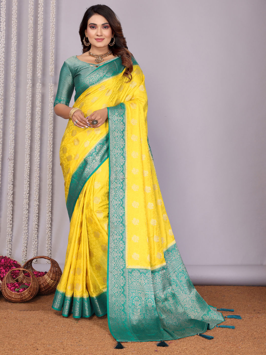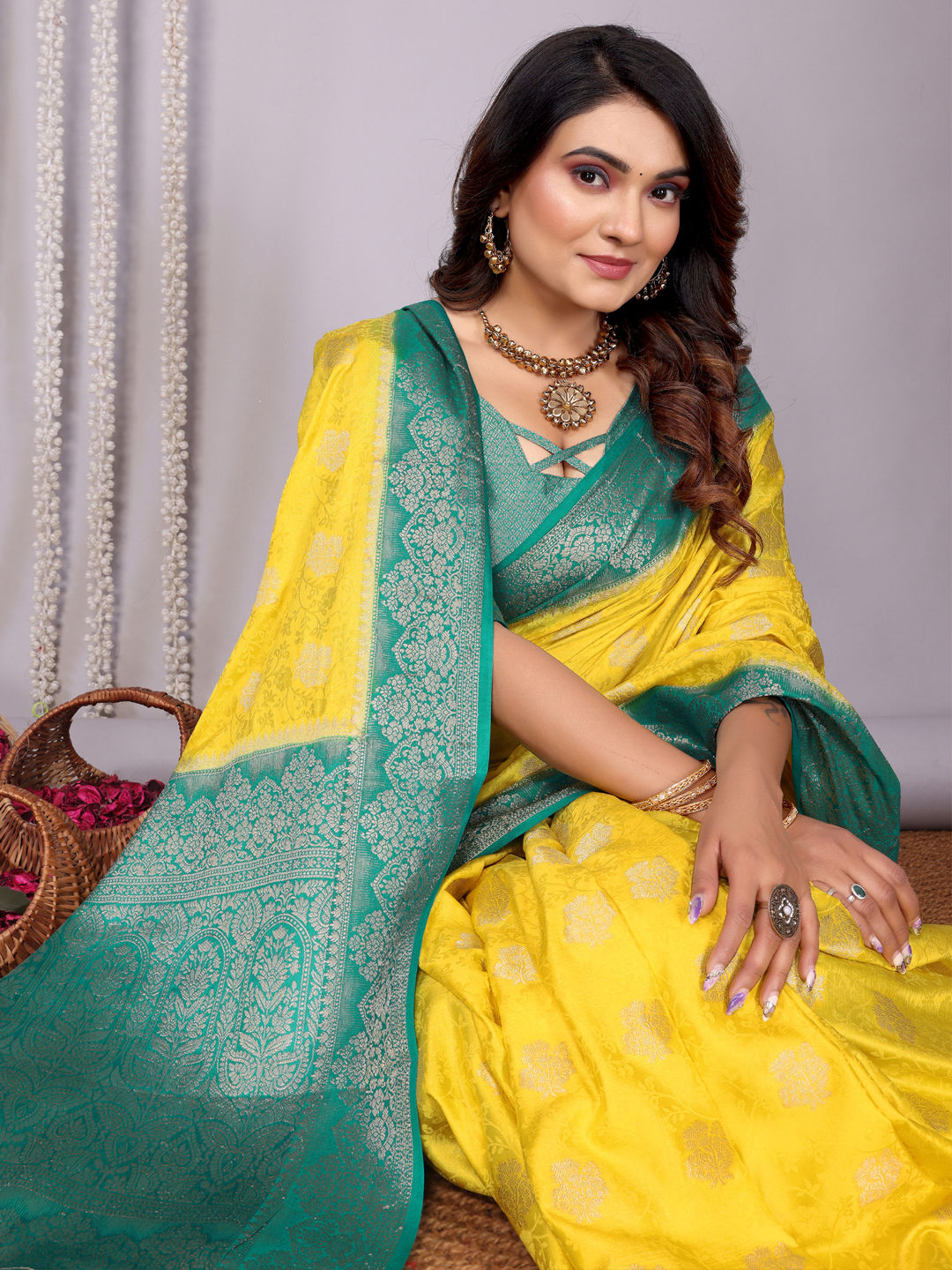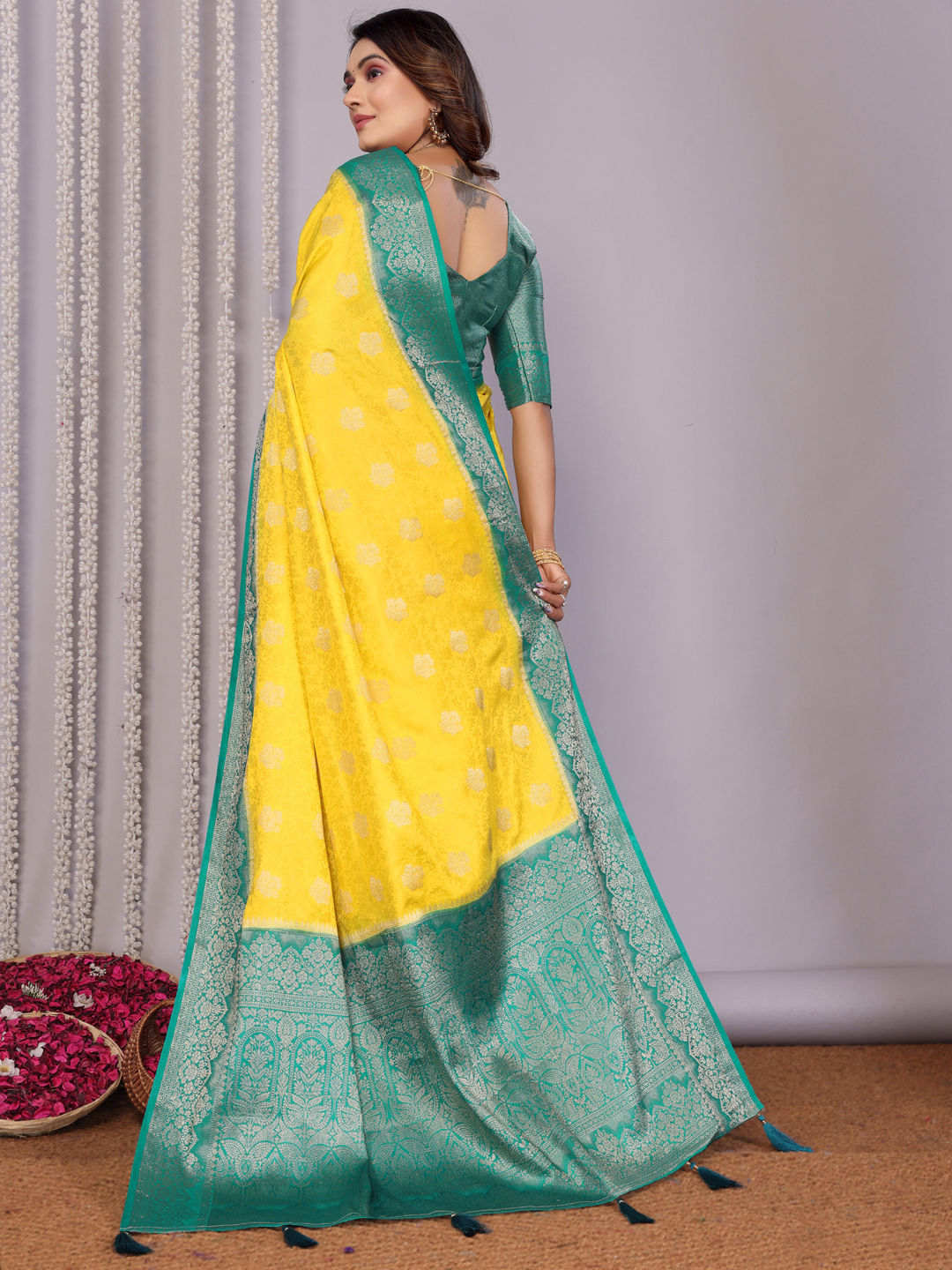 Yellow color Saree in Satin Silk fabric with Weaving work