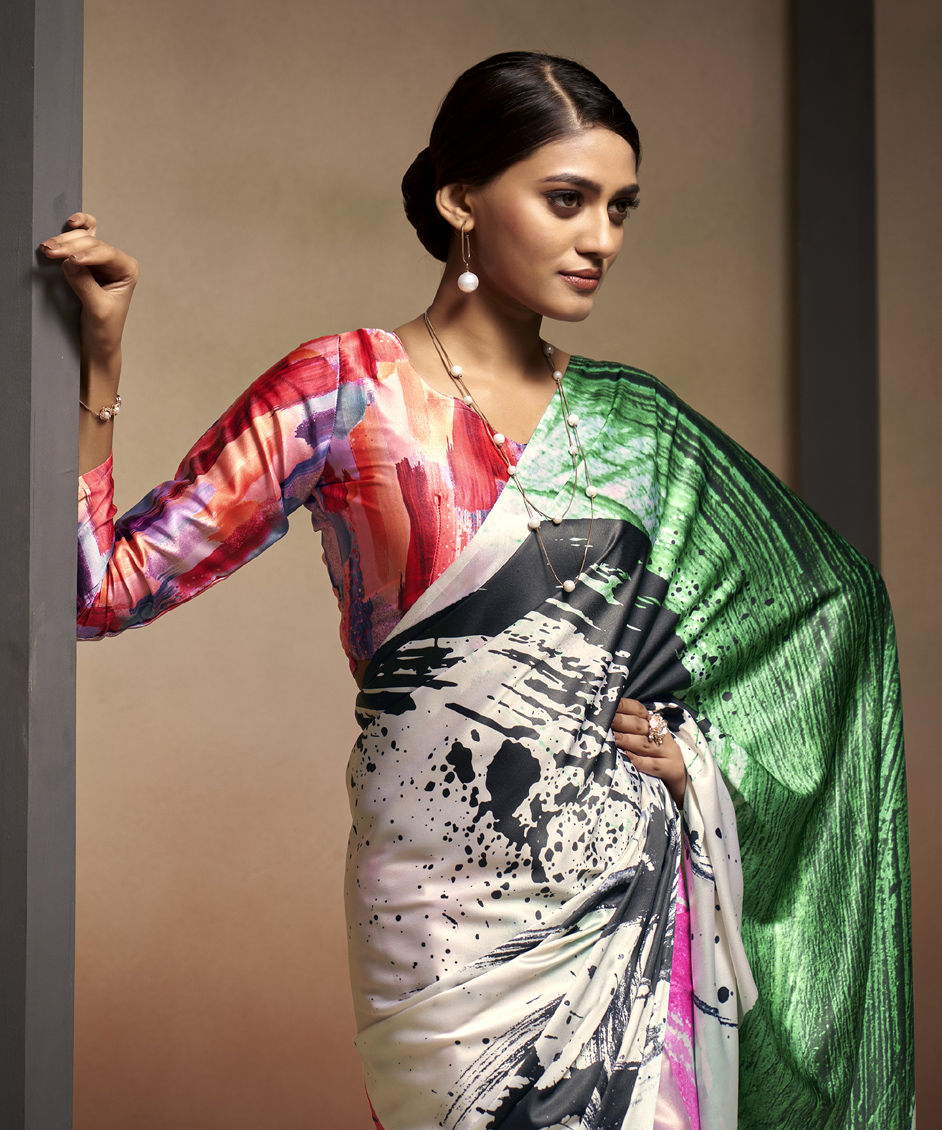 Multicolor color Saree in Satin Silk, Silk fabric with Digital Print work