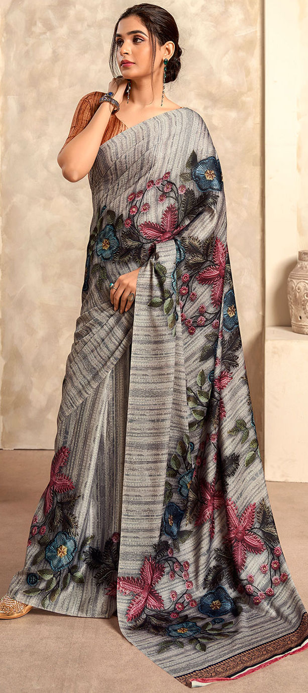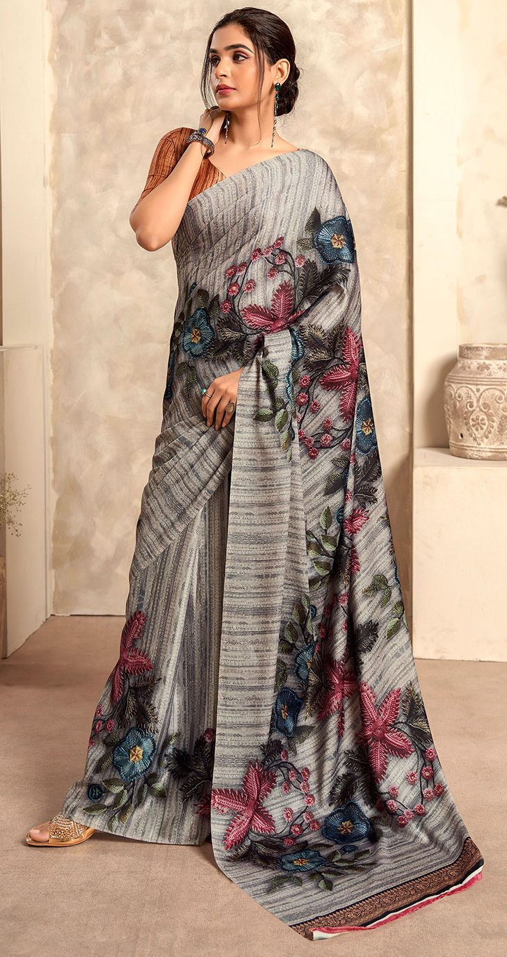 Multicolor color Saree in Satin Silk fabric with Printed work