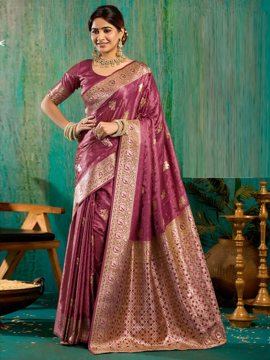 Satin Silk Festive Saree in Purple and Violet with Weaving work