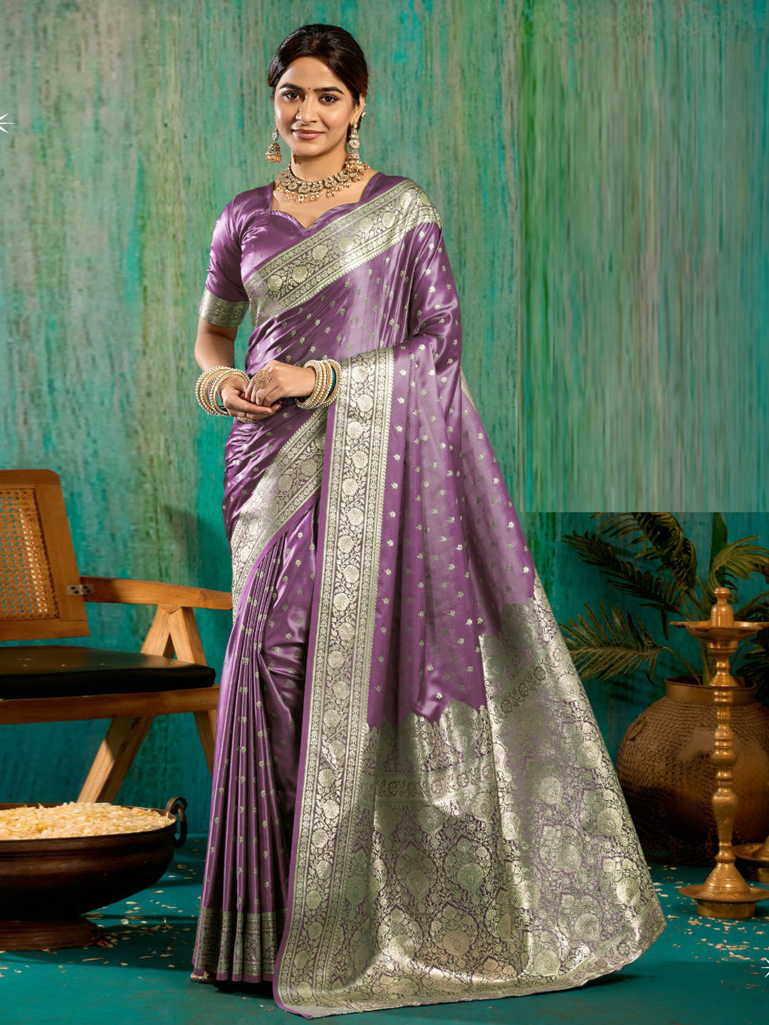 Satin Silk Festive Saree in Purple and Violet with Weaving work