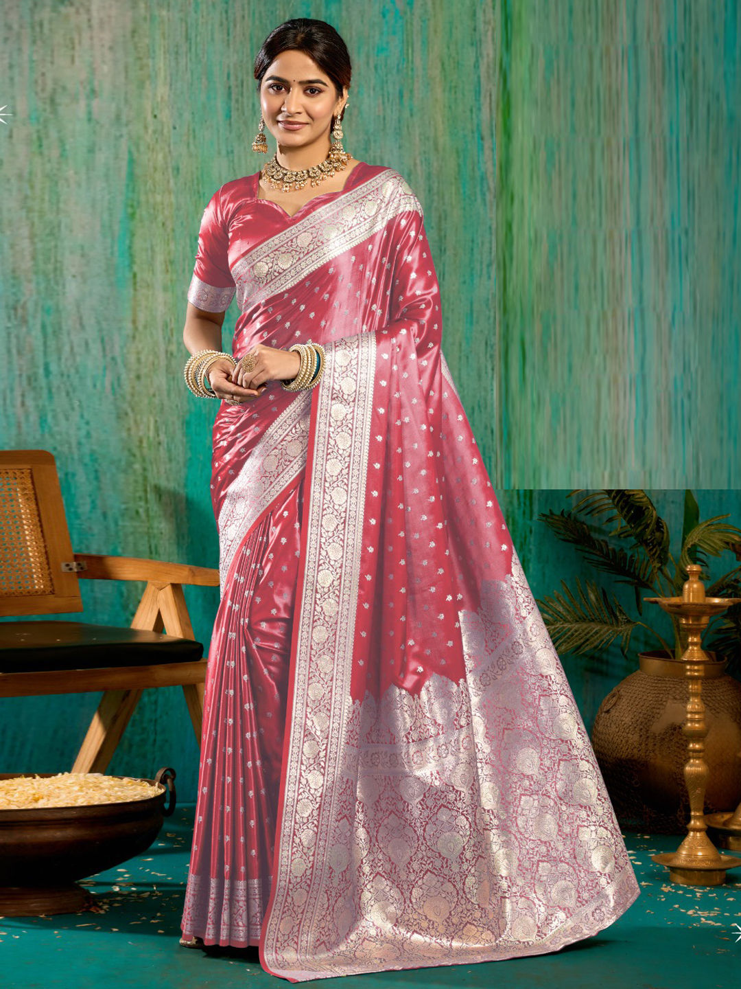 Satin Silk Party Wear Saree in Pink and Majenta with Weaving work