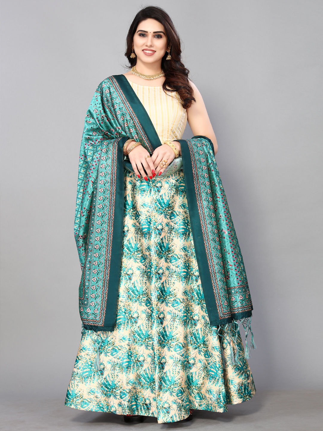 Blue color Lehenga in Satin Silk fabric with Digital Print work