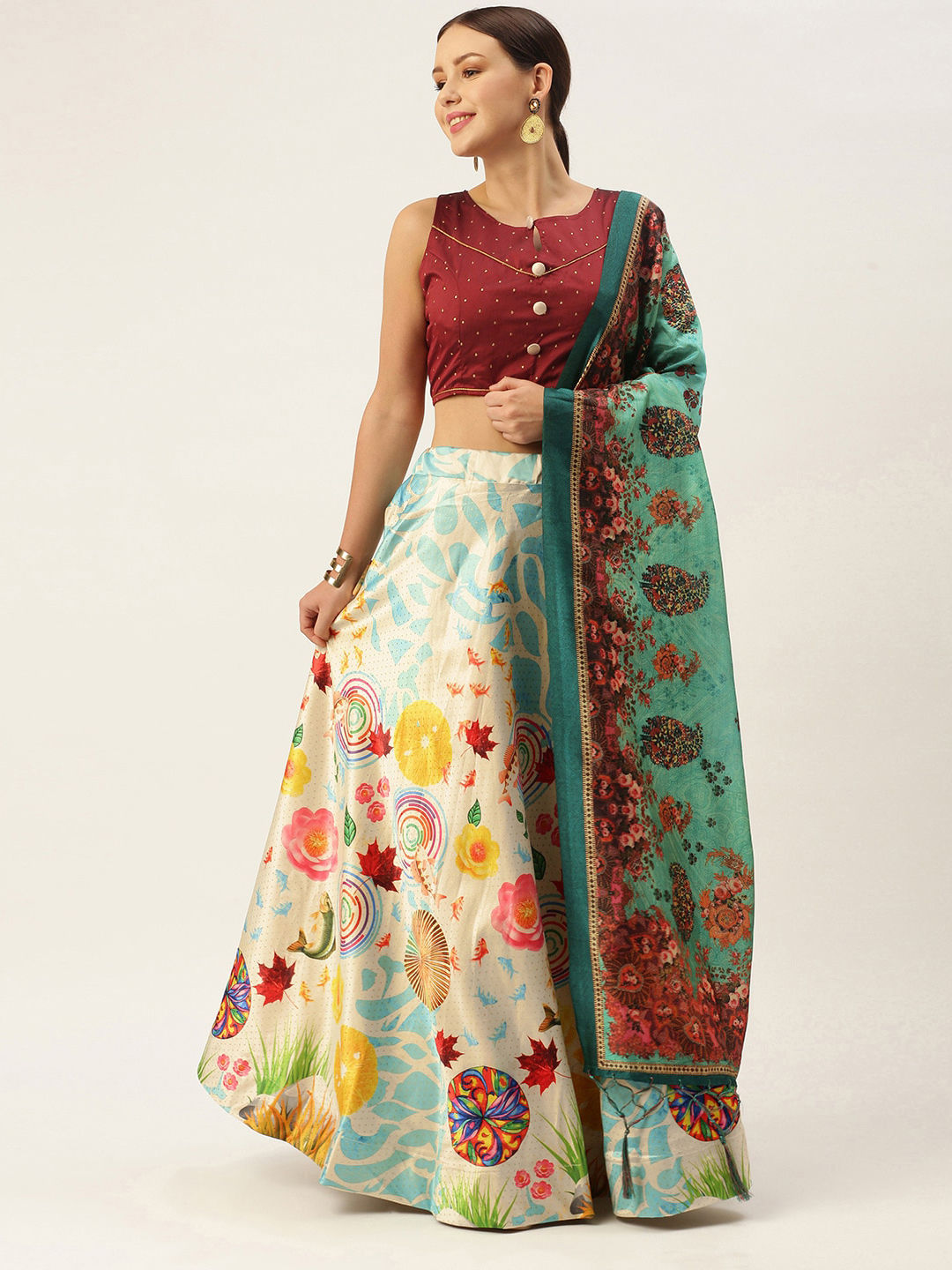 Satin Silk Reception Lehenga in White and Off White with Digital Print work