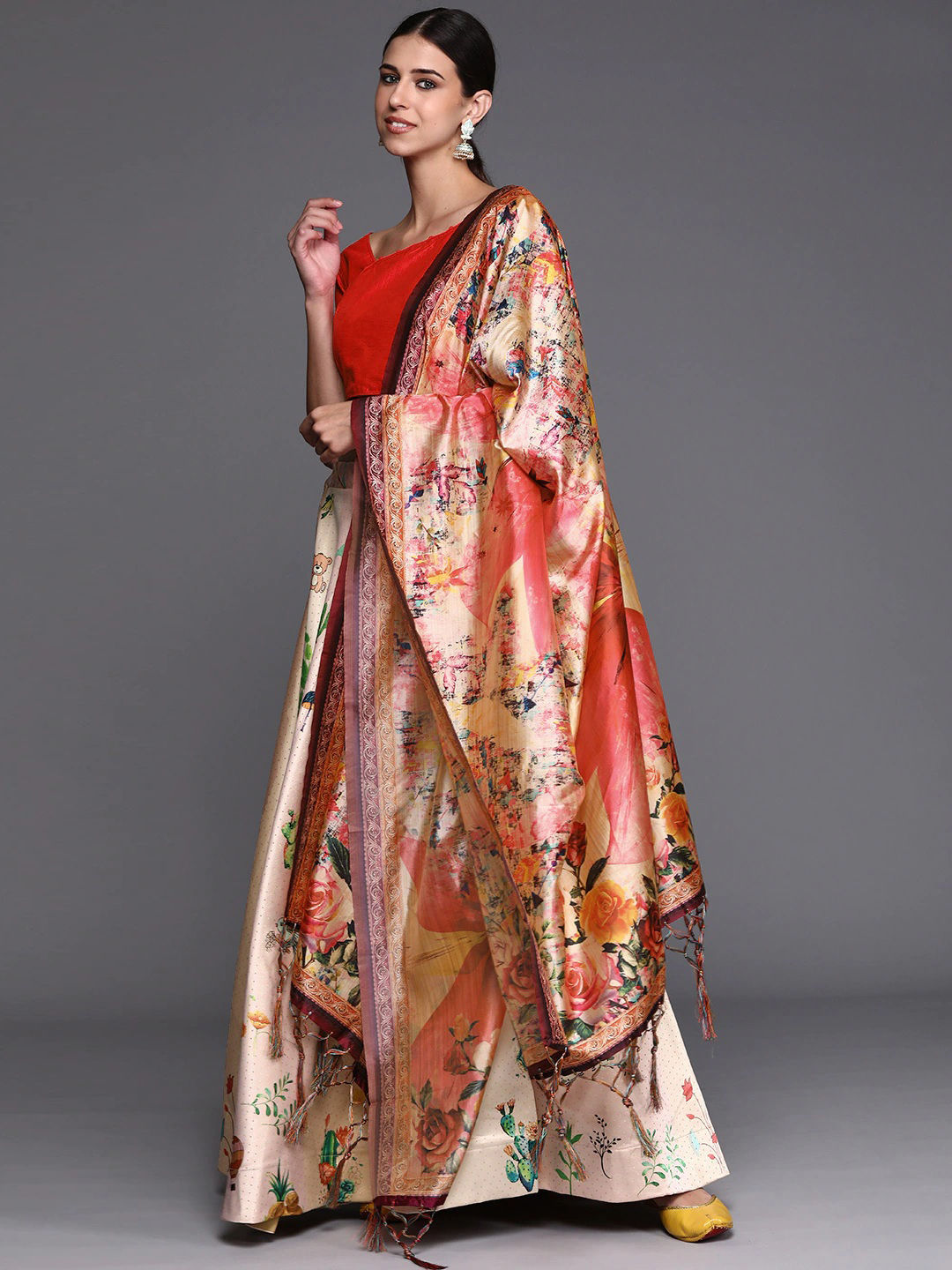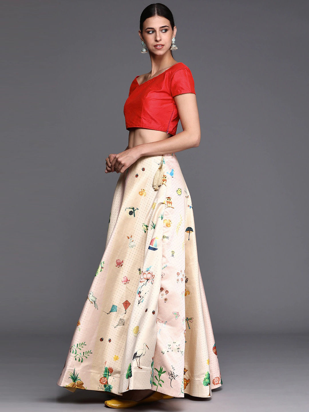 White and Off White color Lehenga in Satin Silk fabric with Digital Print work