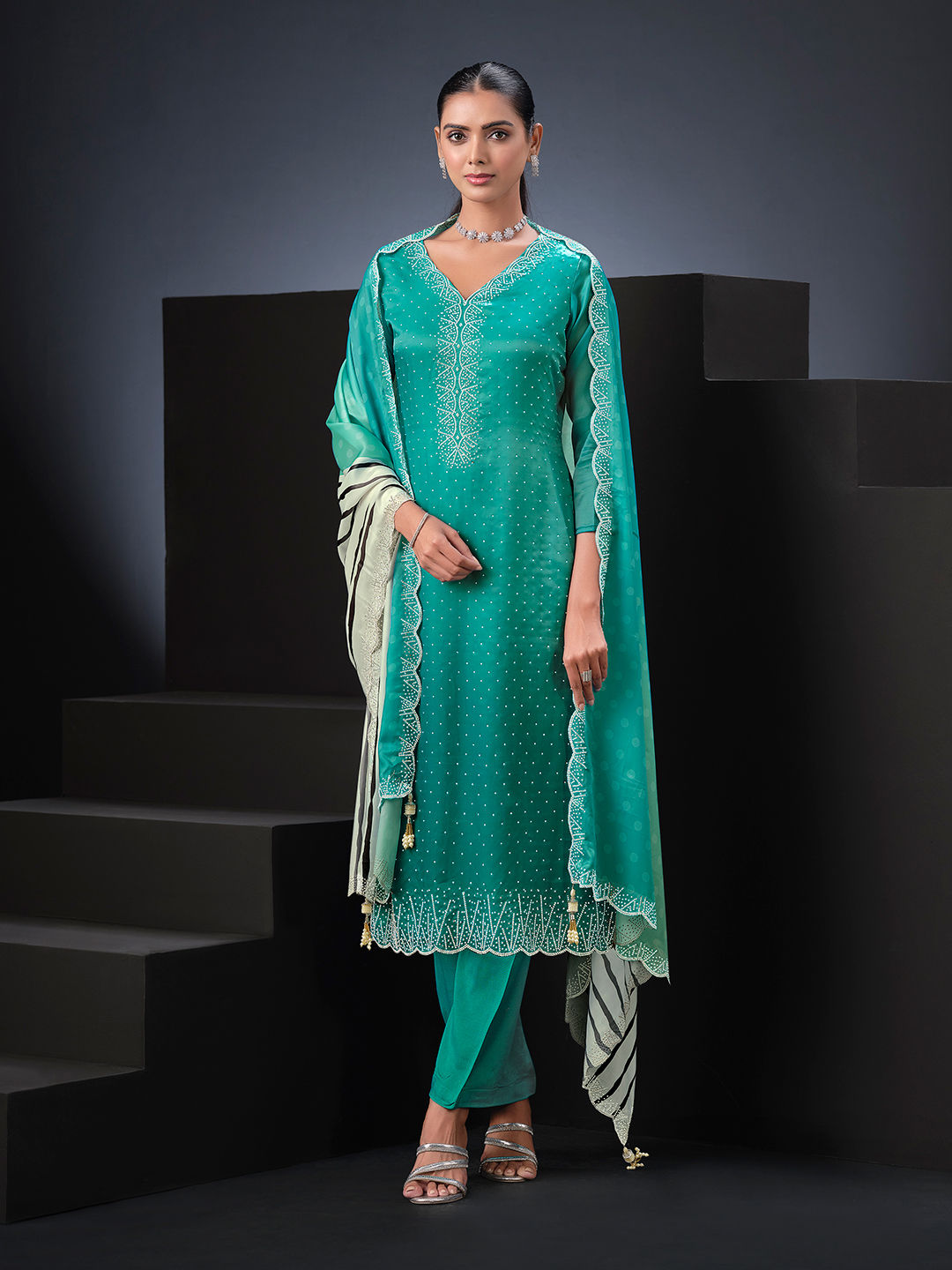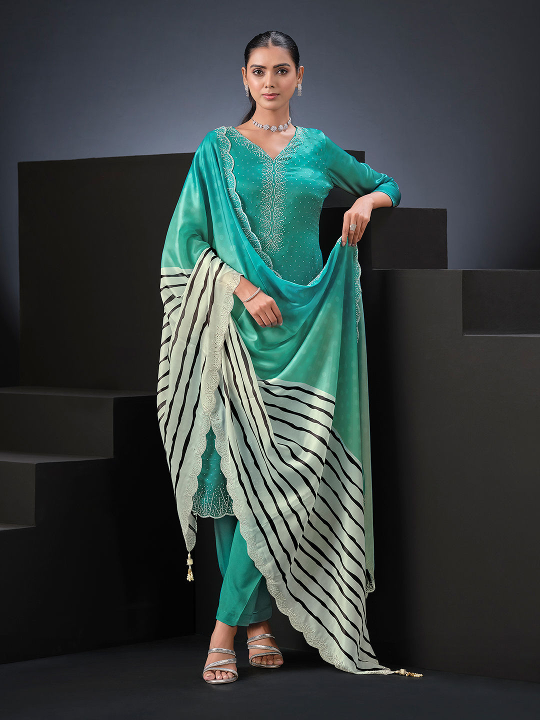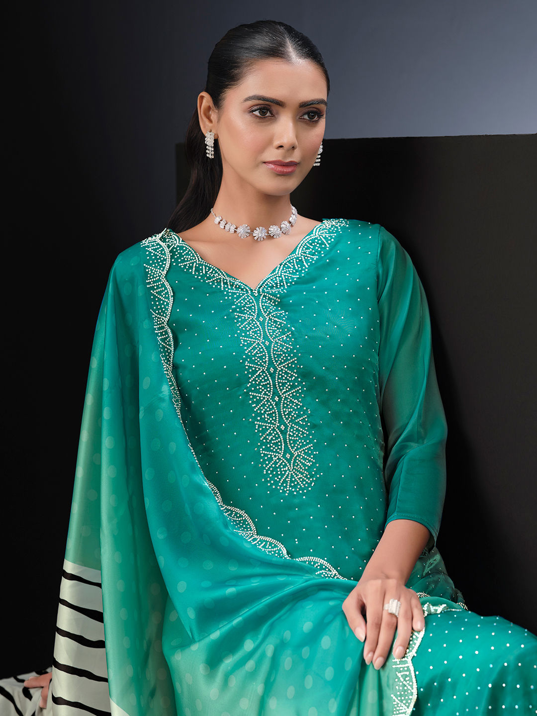 Green color Salwar Kameez in Satin Silk fabric with Stone, Swarovski work