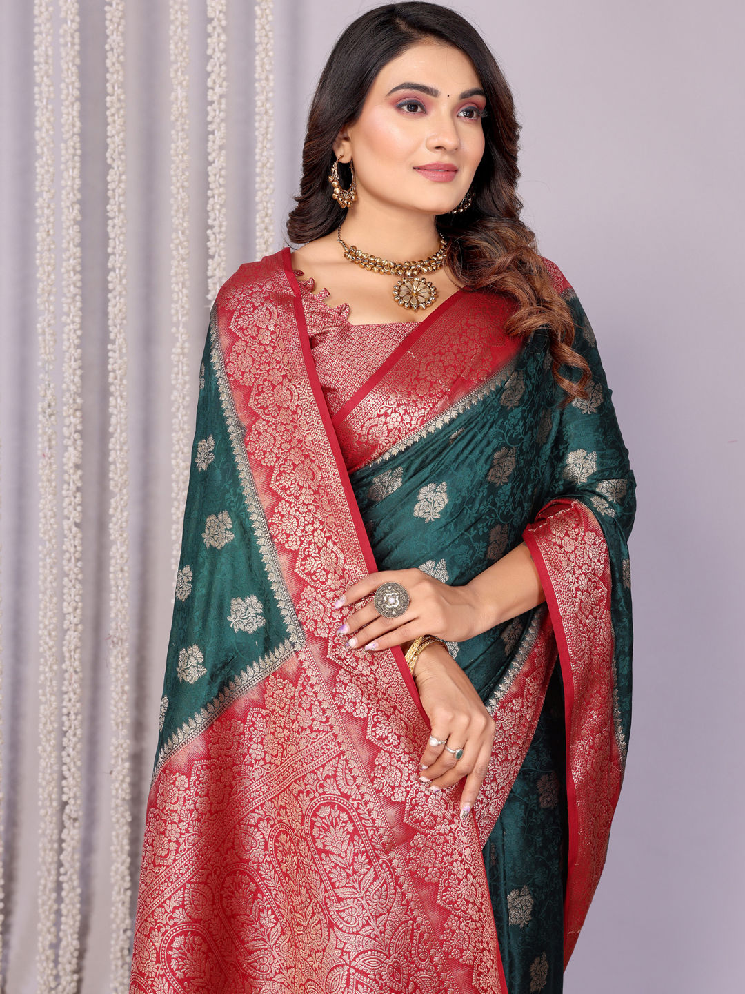 Satin Silk Traditional Saree in Pink and Majenta with Weaving work