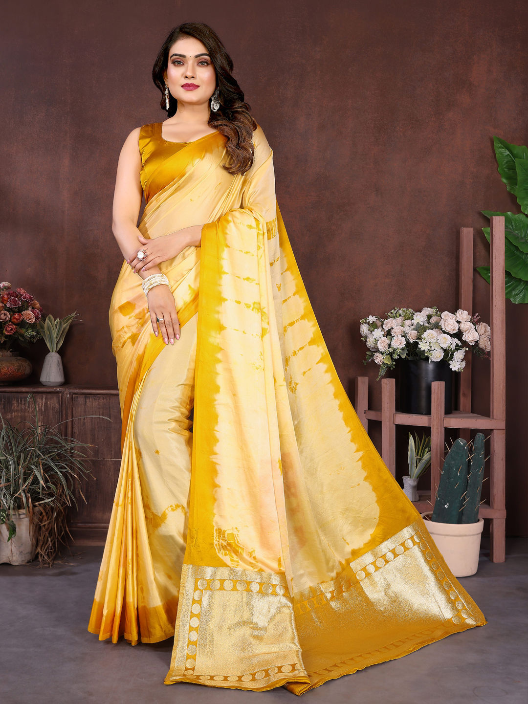 Multicolor color Saree in Satin Silk fabric with Printed, Tye n Dye work