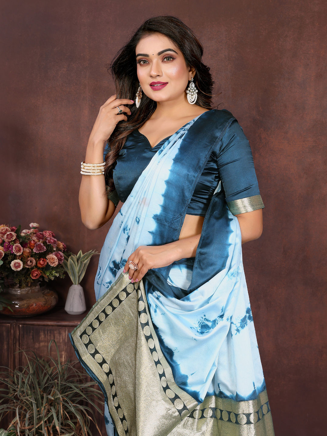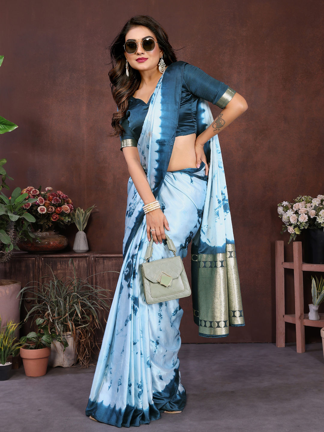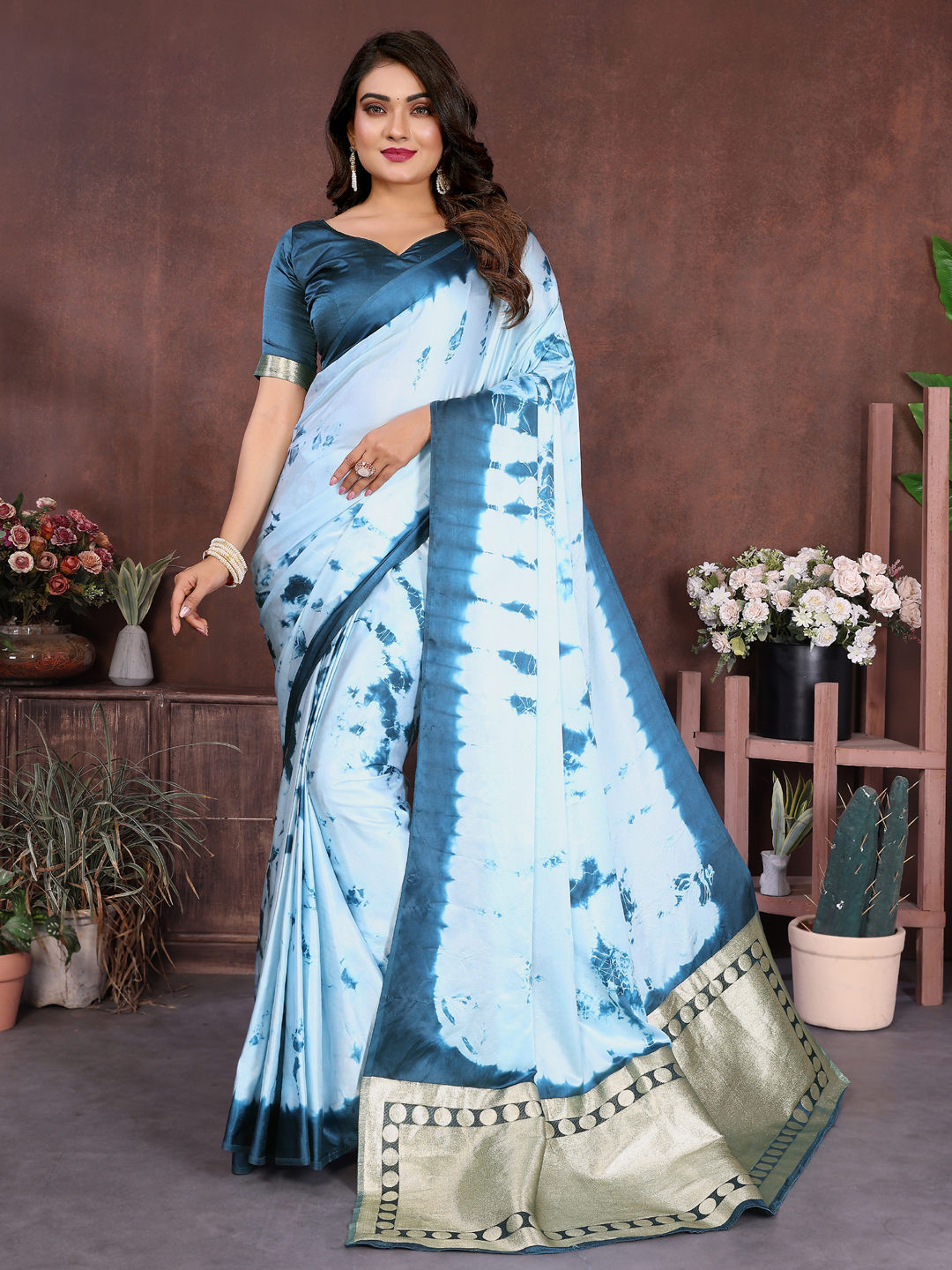 Multicolor color Saree in Satin Silk fabric with Printed, Tye n Dye work