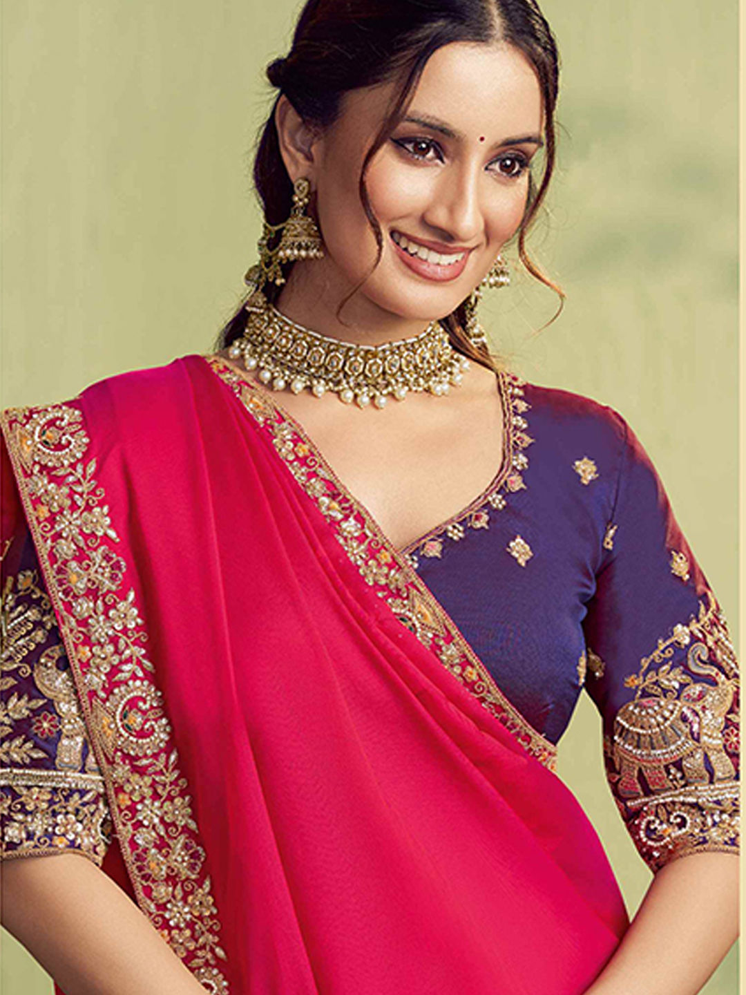 Pink and Majenta color Saree in Satin Silk fabric with Embroidered, Moti, Sequence, Stone, Thread work