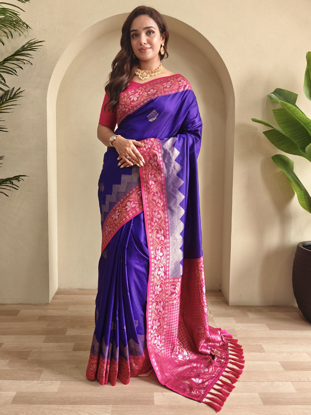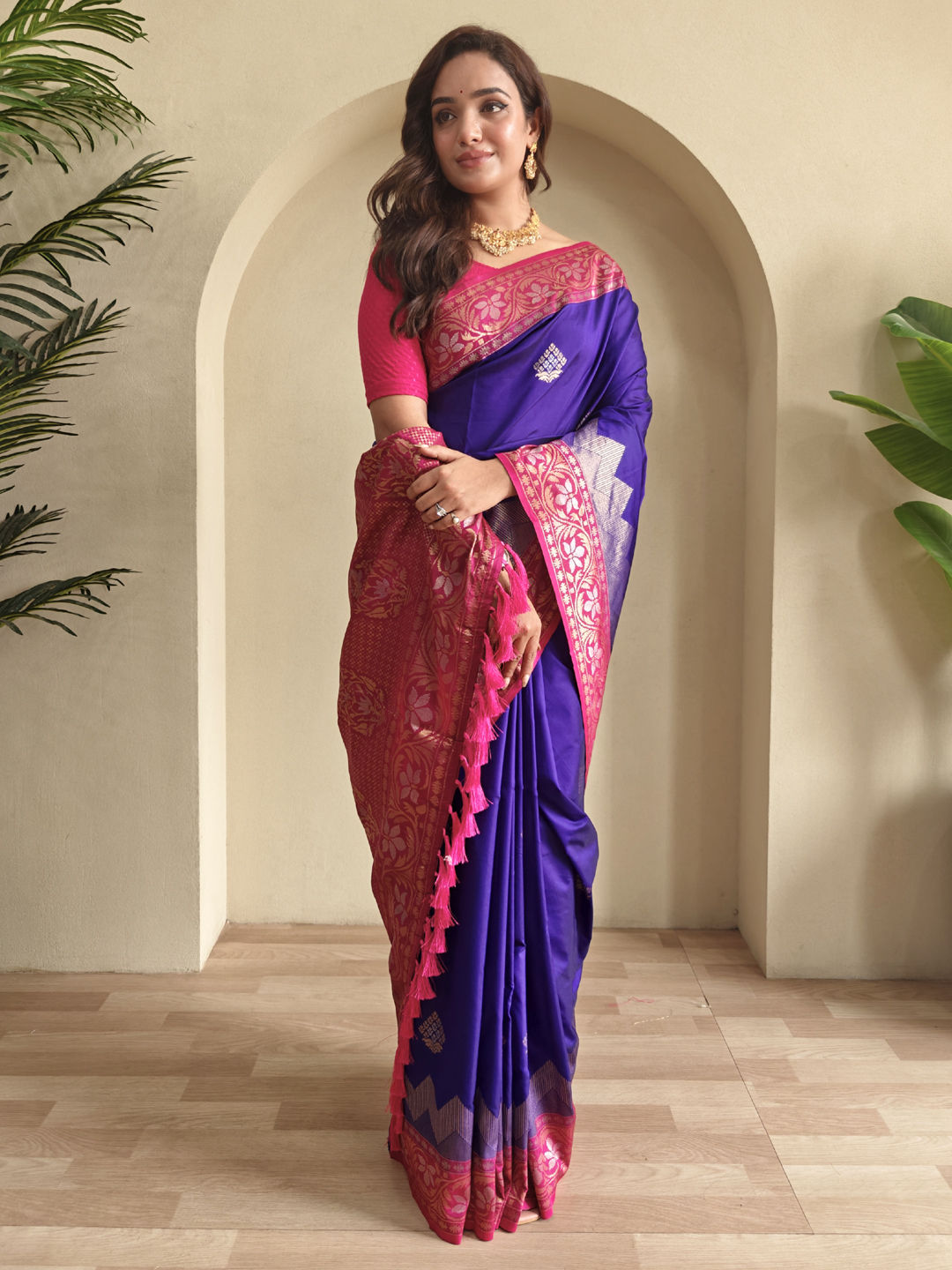 Satin Silk Festive Saree in Purple and Violet with Weaving work