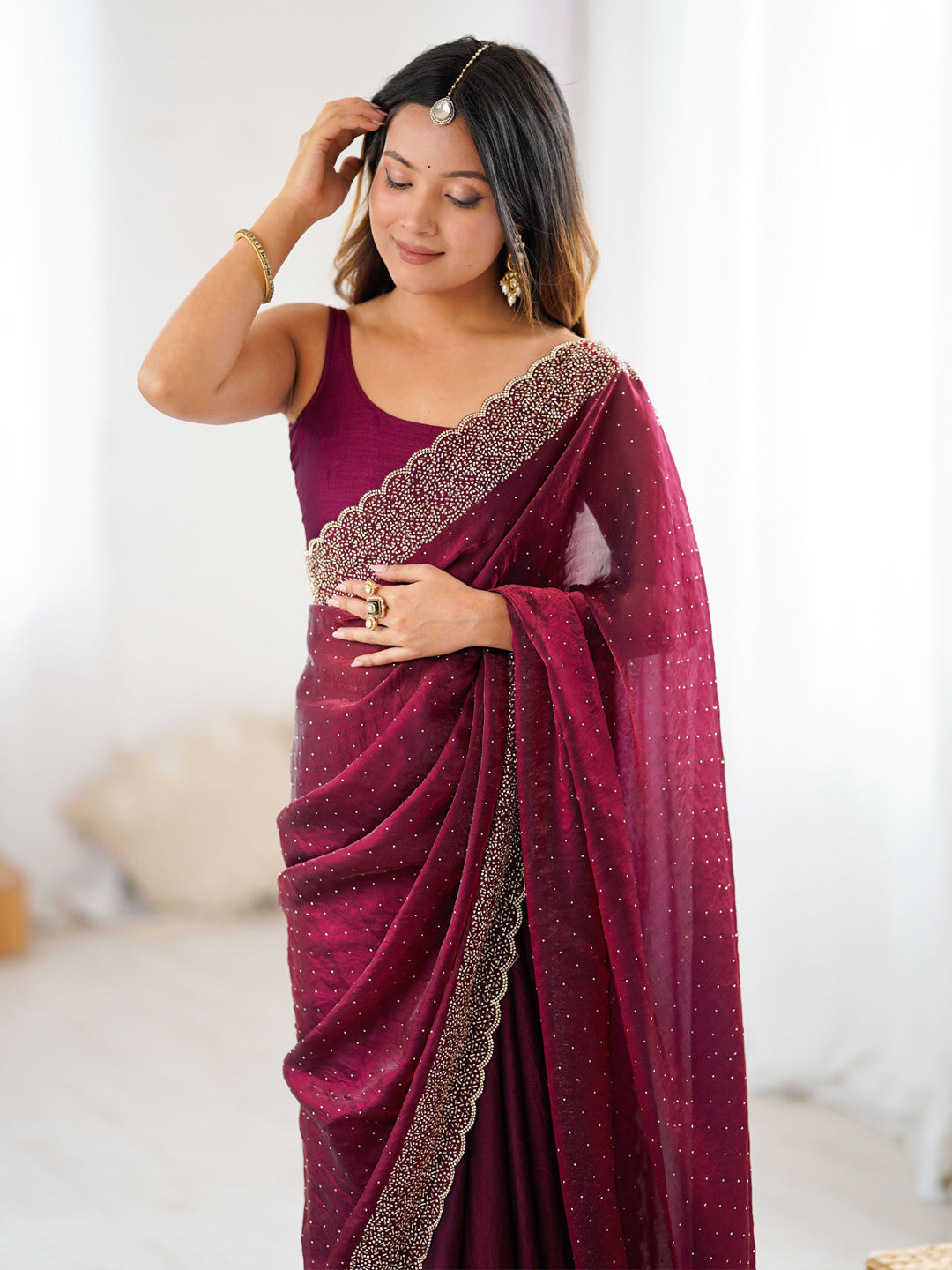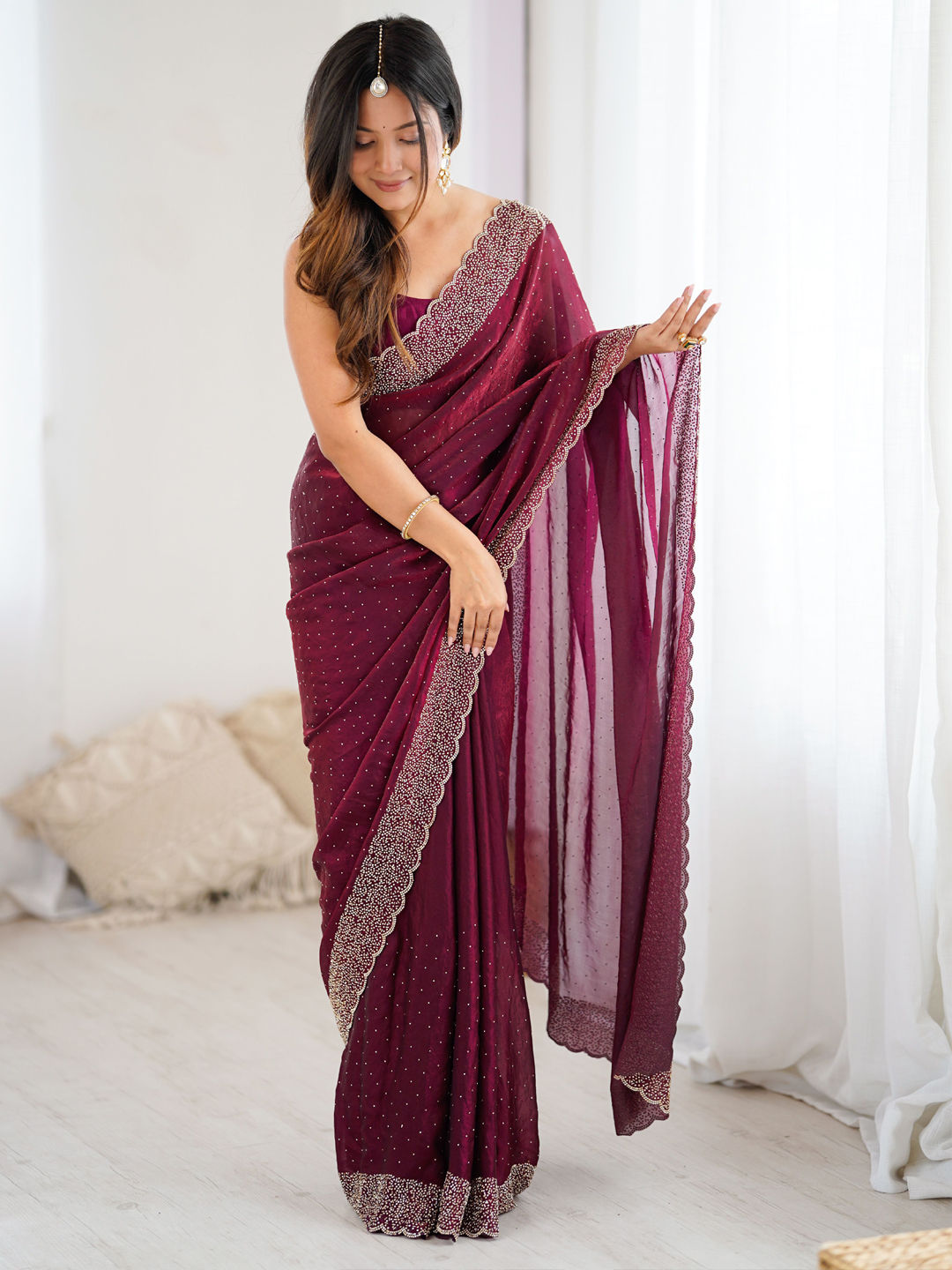 Satin Silk Traditional Saree in Purple and Violet with Zircon work