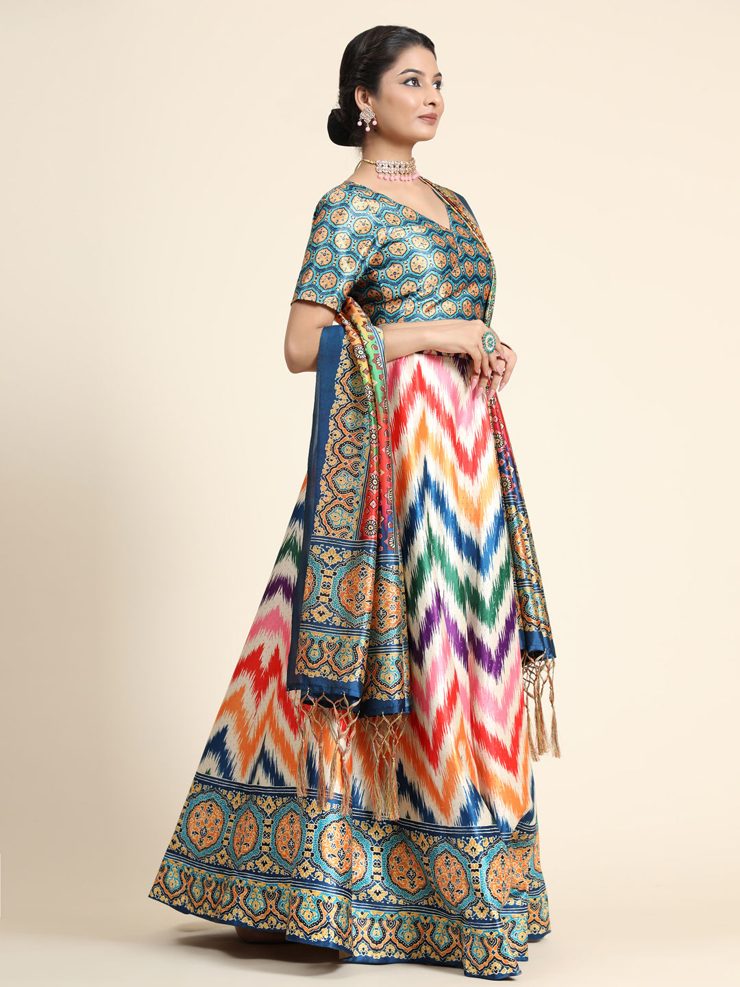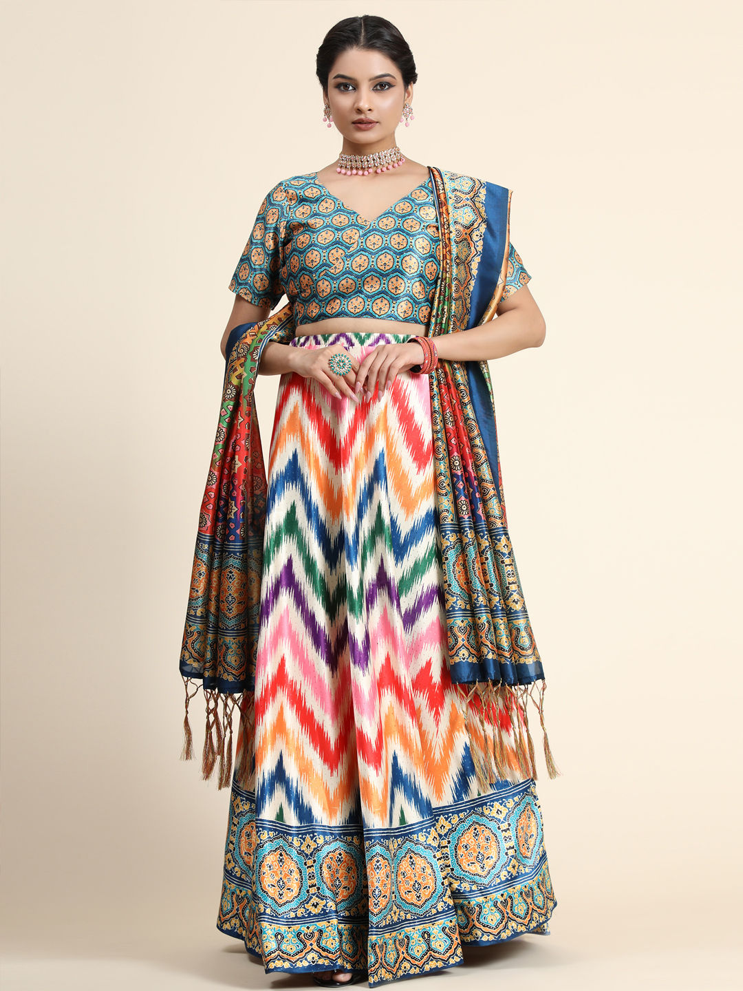 Blue color Lehenga in Satin Silk fabric with Digital Print work