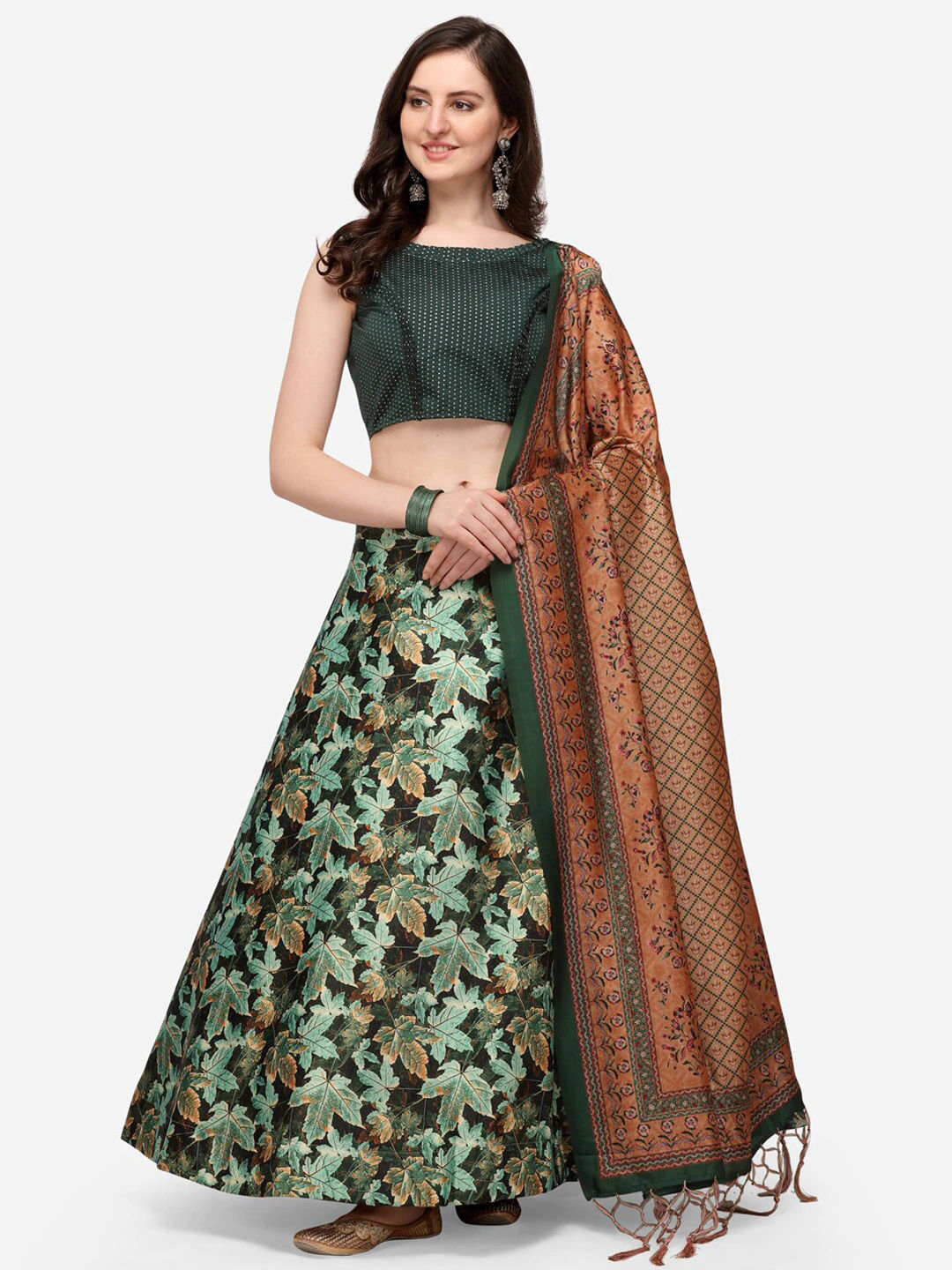 Green color Lehenga in Satin Silk fabric with Digital Print work