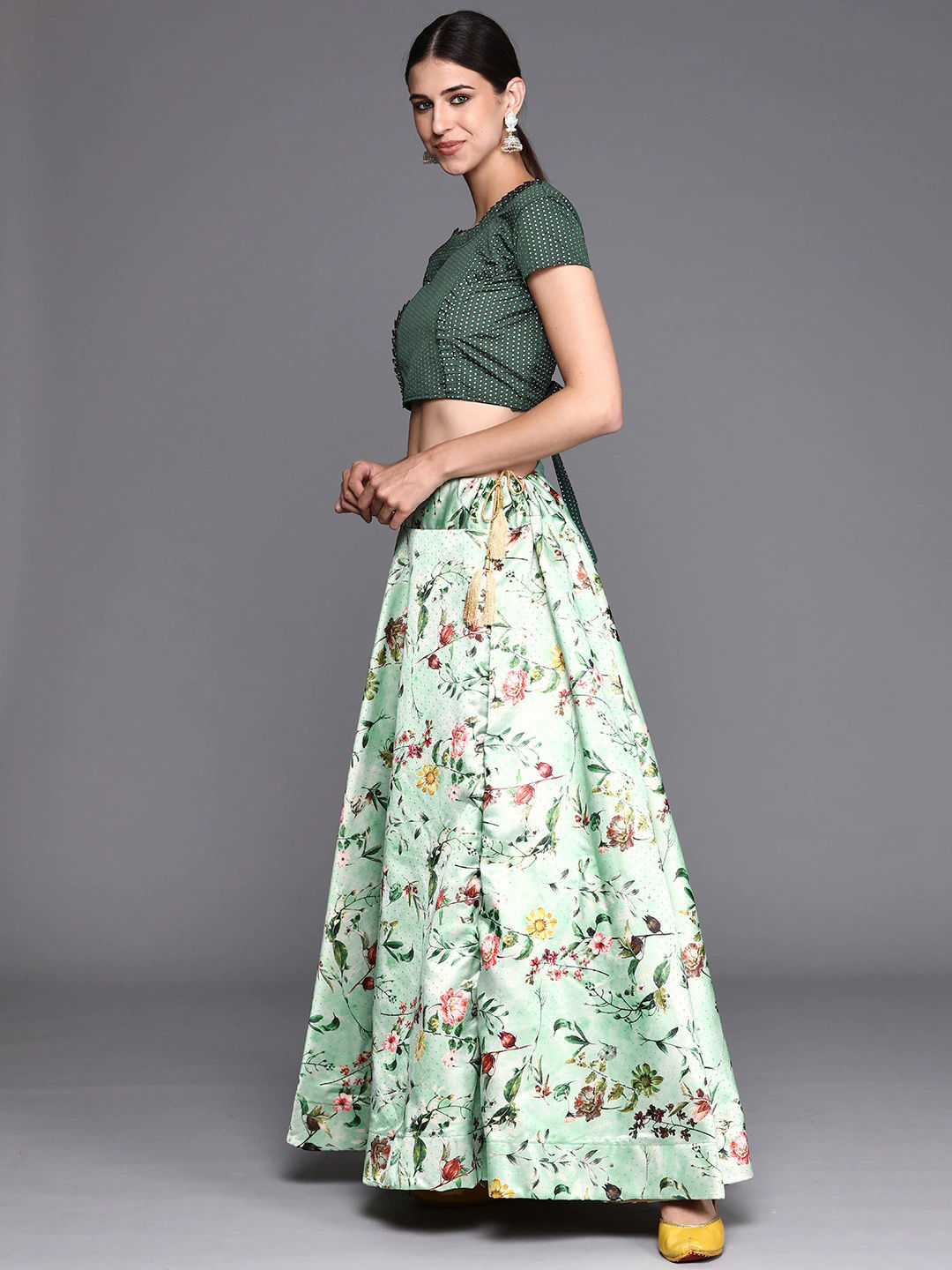 Green color Lehenga in Satin Silk fabric with Digital Print work
