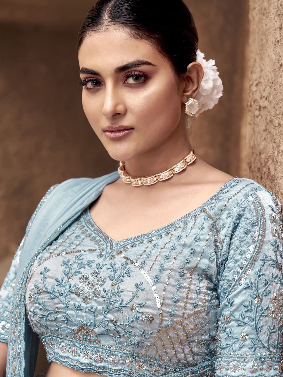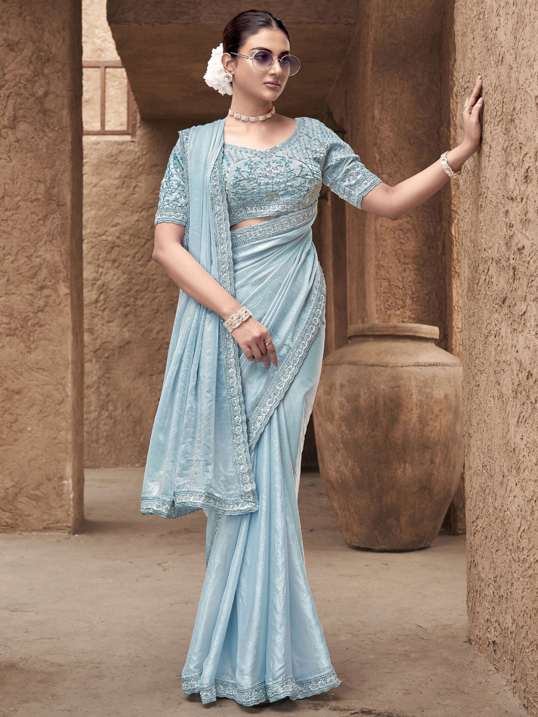 Blue color Readymade Saree in Satin Silk fabric with Border, Bugle Beads, Sequence, Thread, Zari work