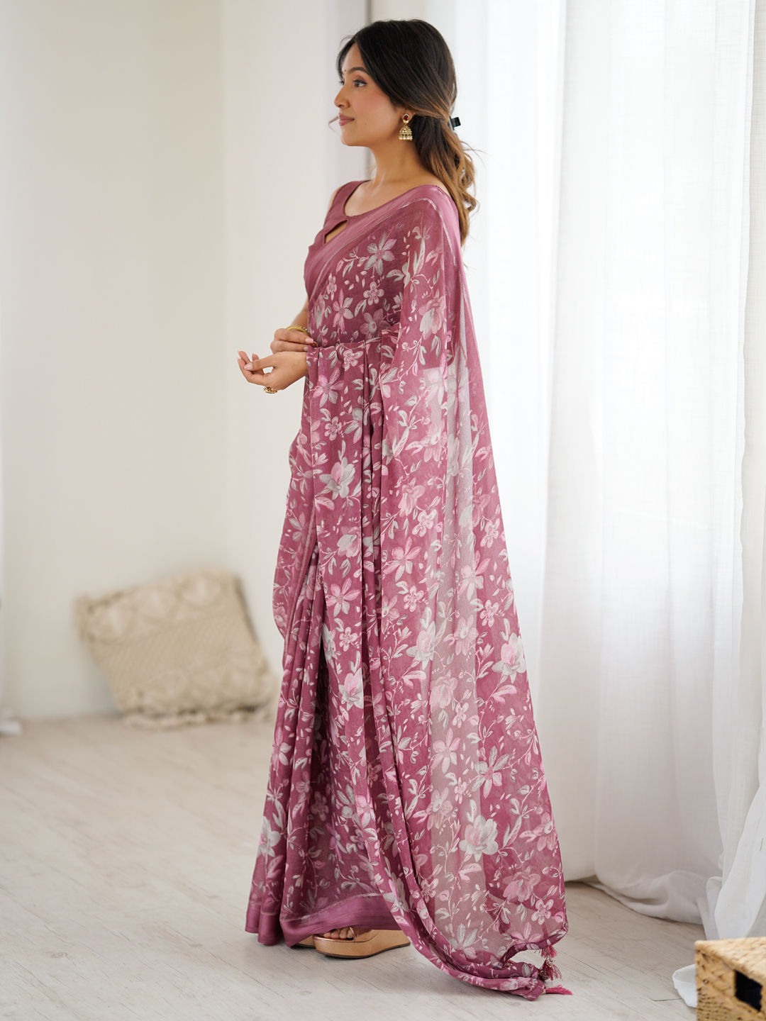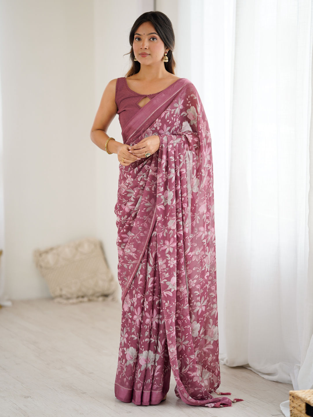 Satin Silk Party Wear Saree in Purple and Violet with Printed work